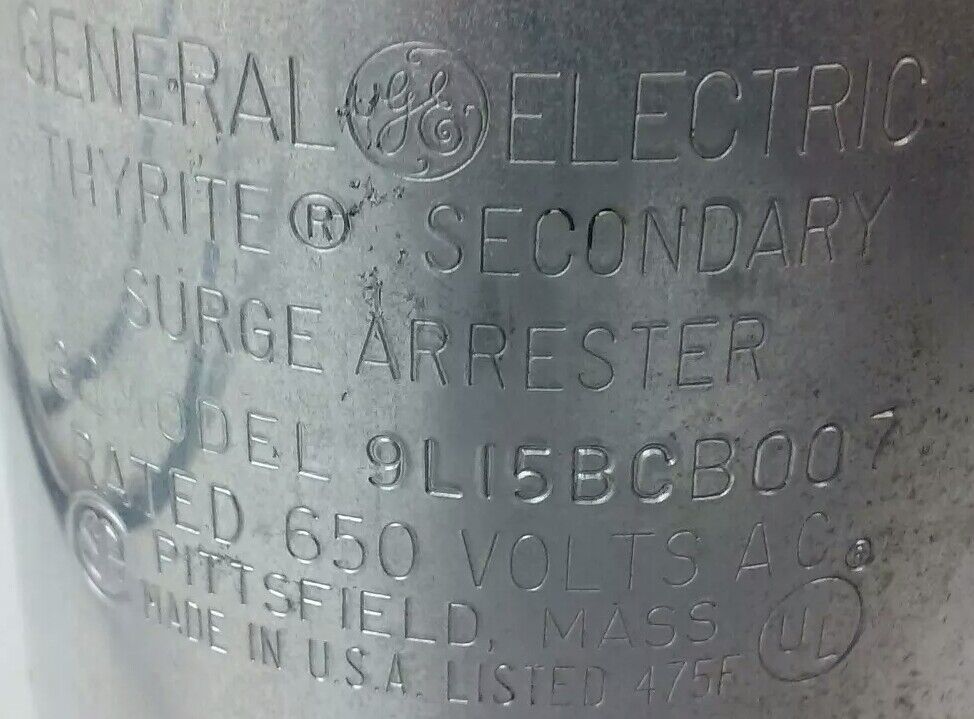 GE 9L15BCB007 THYRITE SECONDARY SURGE ARRASTER, 0-650VOLTS, 2POLES, NEW SURPLUS
