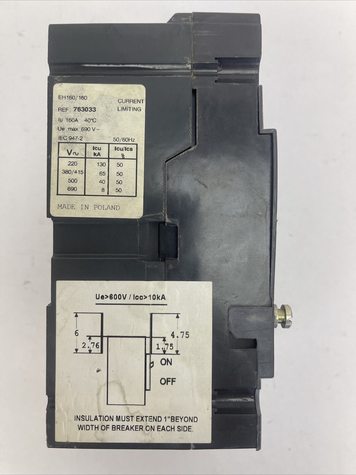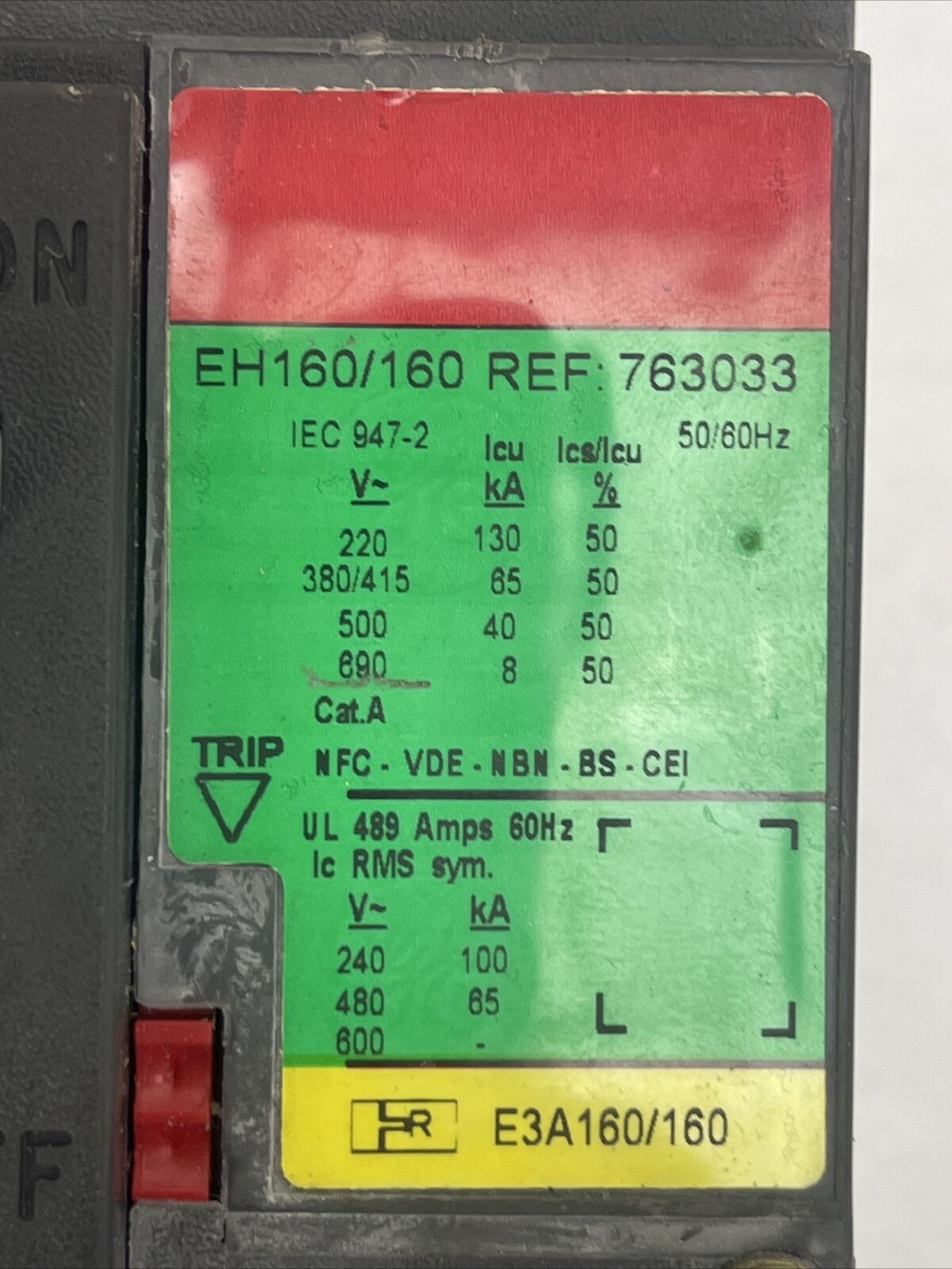GE EH160/160 CIRCUIT BREAKER 600VAV 160A 3POLE E3A160 TRIP PLUG