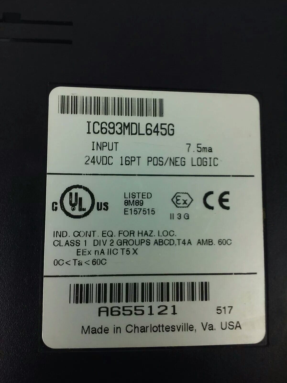 GE FANUC IC693MDL645G INPUT MODULE 24VDC 16PT POS/NEG 7.5mA, USED MISSING COVER AND BROKE PLASTIC CLIP ON BACK!!! (REFERENCE PHOTO 5&6)