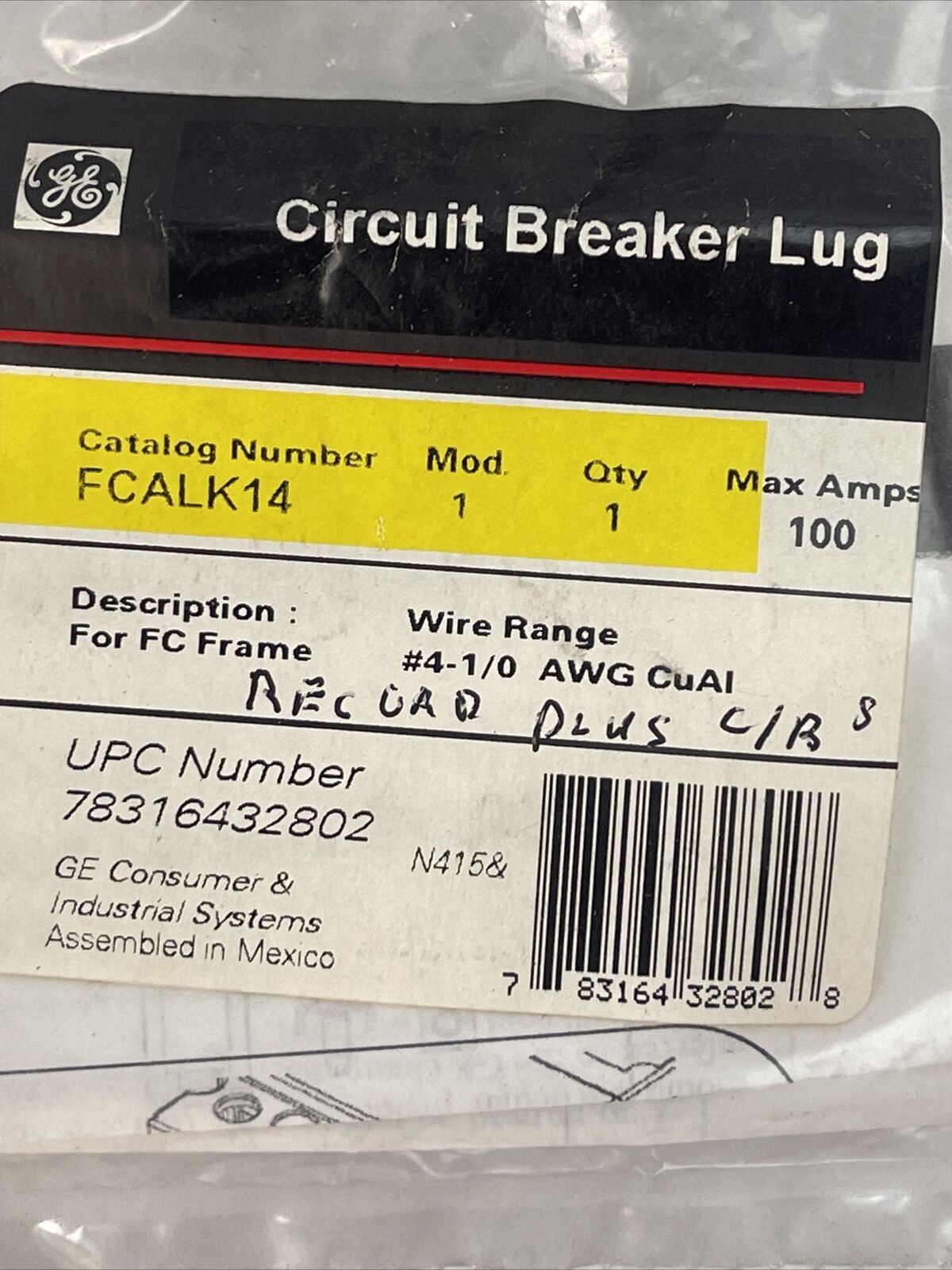 GE FCALK14 CIRCUIT BREAKER LUG MOD 1 100AMP FOR FC FRAME #4-1/0 AWG CuAL