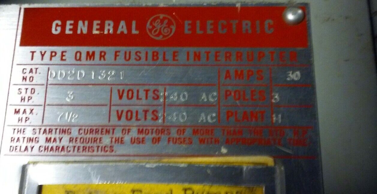 GE General Electric DD2D1321 - 30 Amp 3-Pole 240V QMR Fusible Interrupter Switch