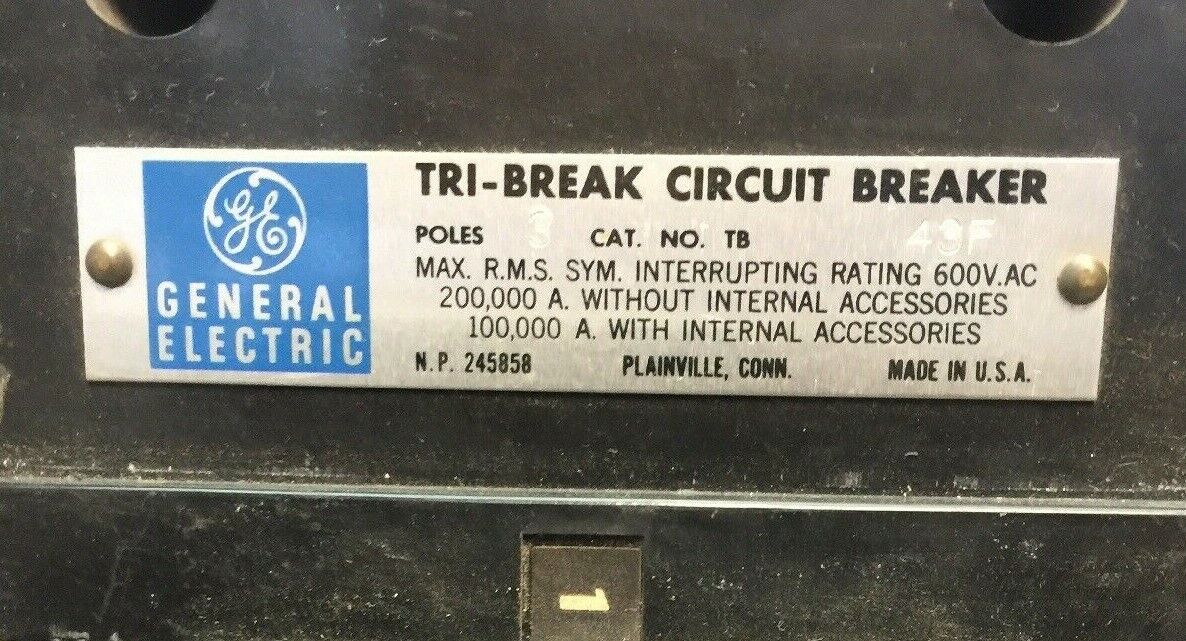 GE TB43F TRI-BREAK CIRCUIT BREAKER 600VAC 250A TRIP A6KA CURRENT LIMITING FUSES