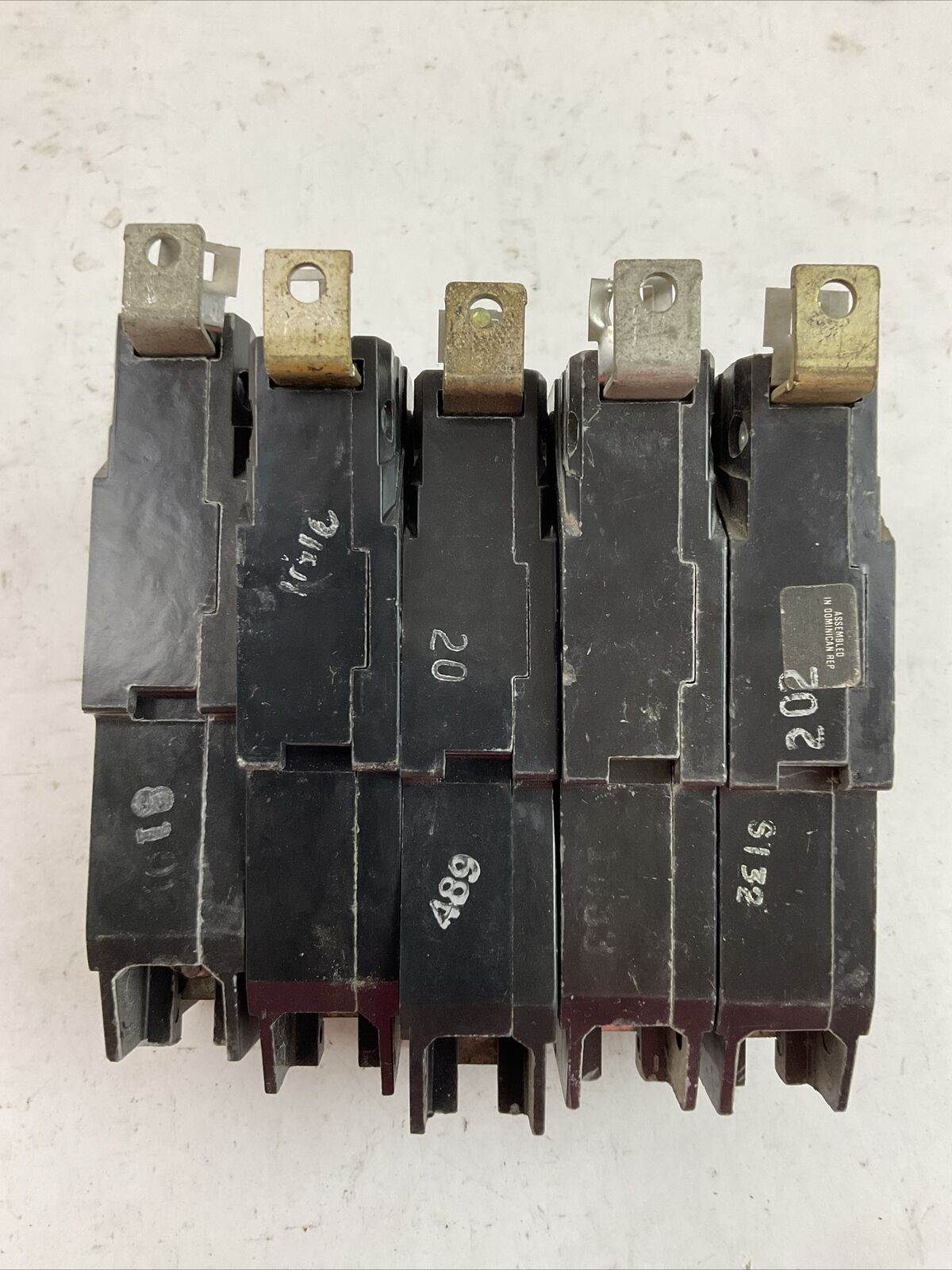 GE TEY120 20AMP 277VAC 125VDC 1POLE CIRCUIT BREAKER (LOT OF 5)
