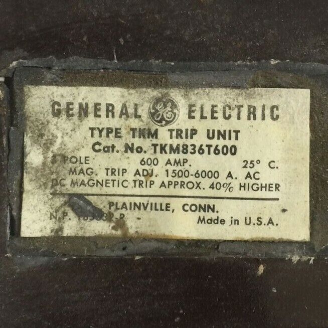 GE TKM836T600 TRIP UNIT 600AMP 3POLE