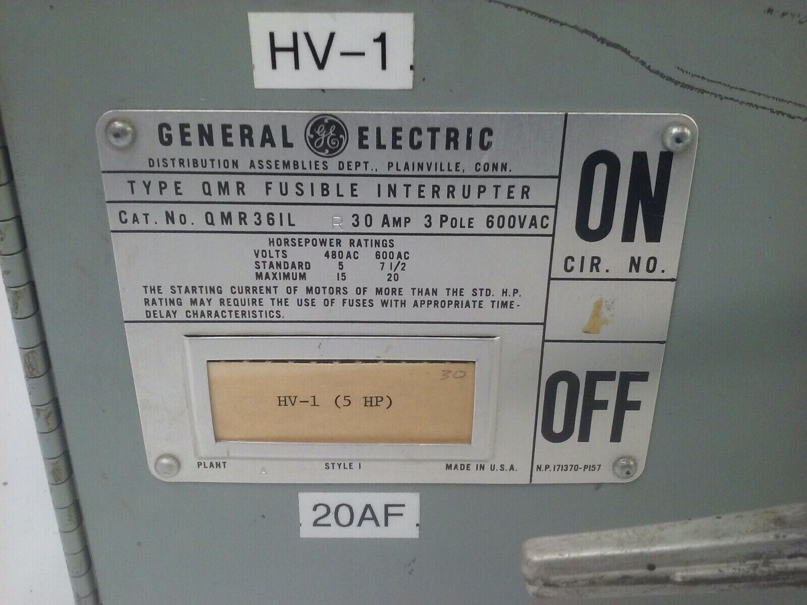 GE TYPE QMR QMR361L QMR361R TWIN FUSIBLE INTERRUPTER SWITCH