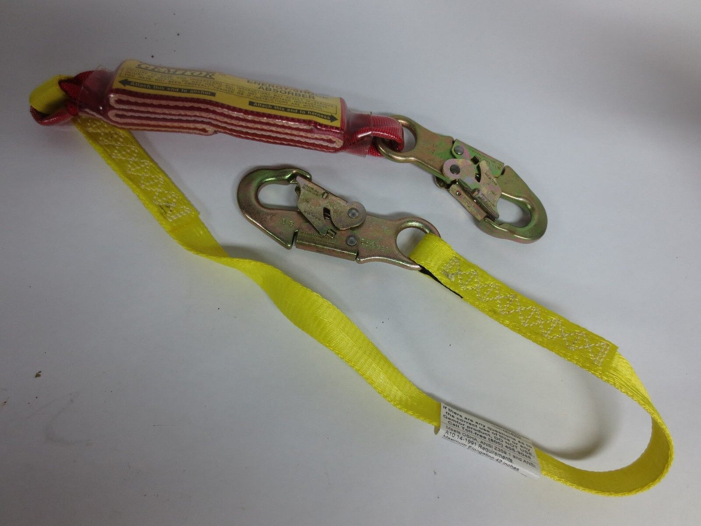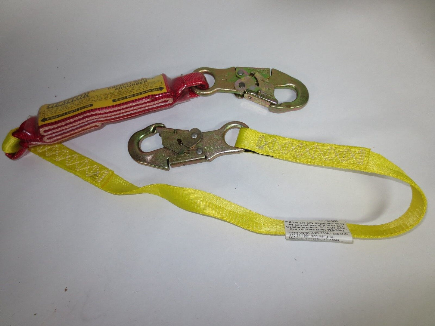 Soft-Pack energy absorber with 1" wide polyester web lanyard with #5155 locking snaphooks at each end. 4 ft. length. Meets ANSI Z359.13, A10.32