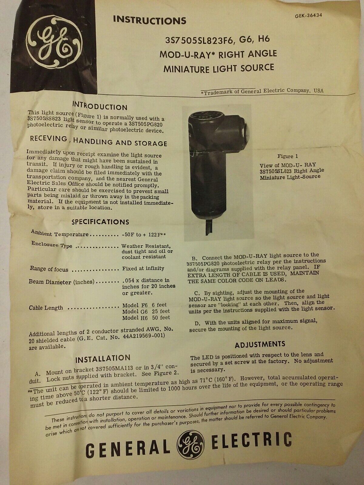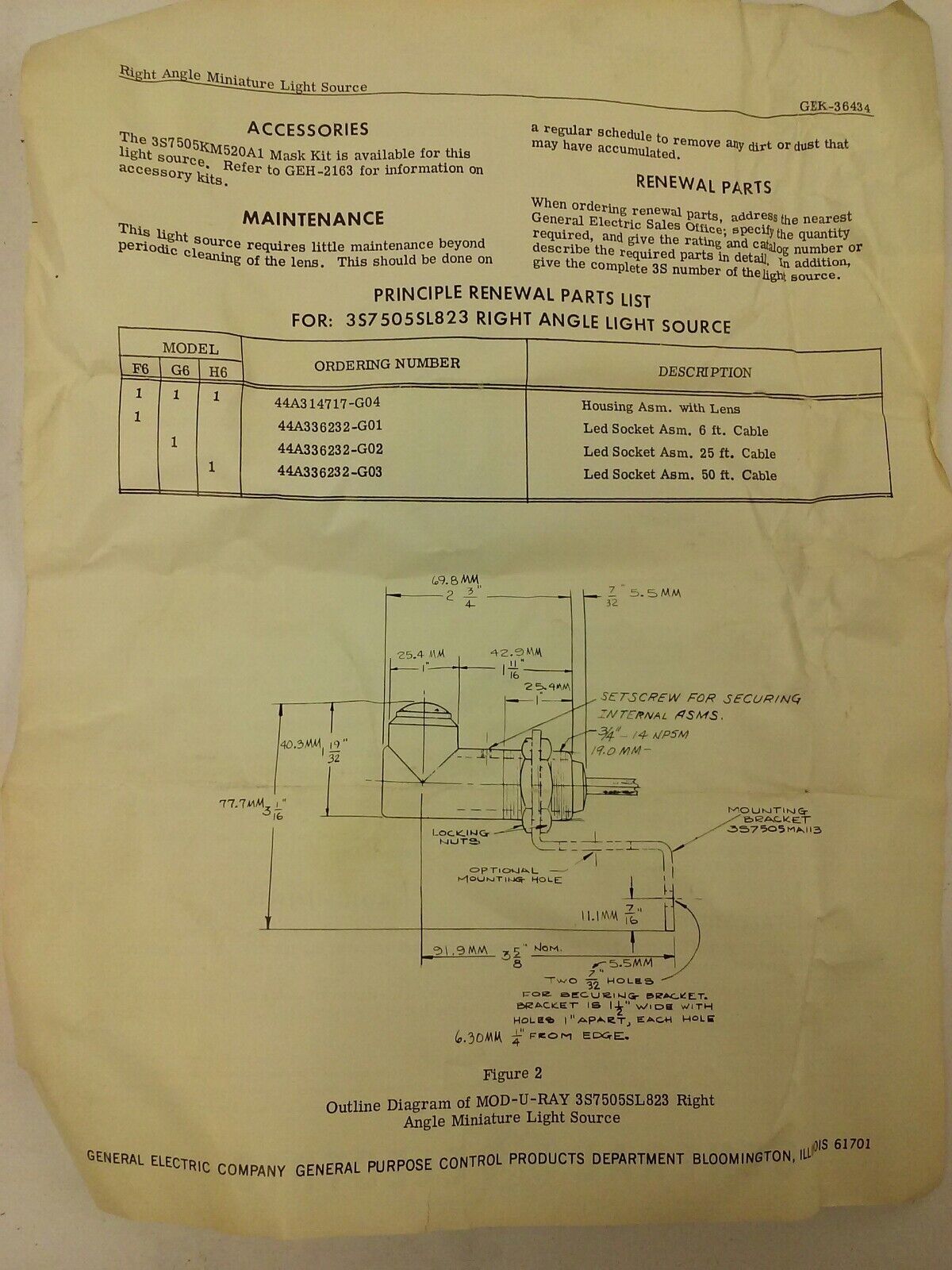 GENERAL ELECTRIC 3S7505SL823H6, 3S7505SL823, MOD-U-RAY, RIGHT ANGLE LIGHT SOURCE, WEATHER RESISTANT, DUST TIGHTAND OIL OR COOLANT RESISTANT, NEW