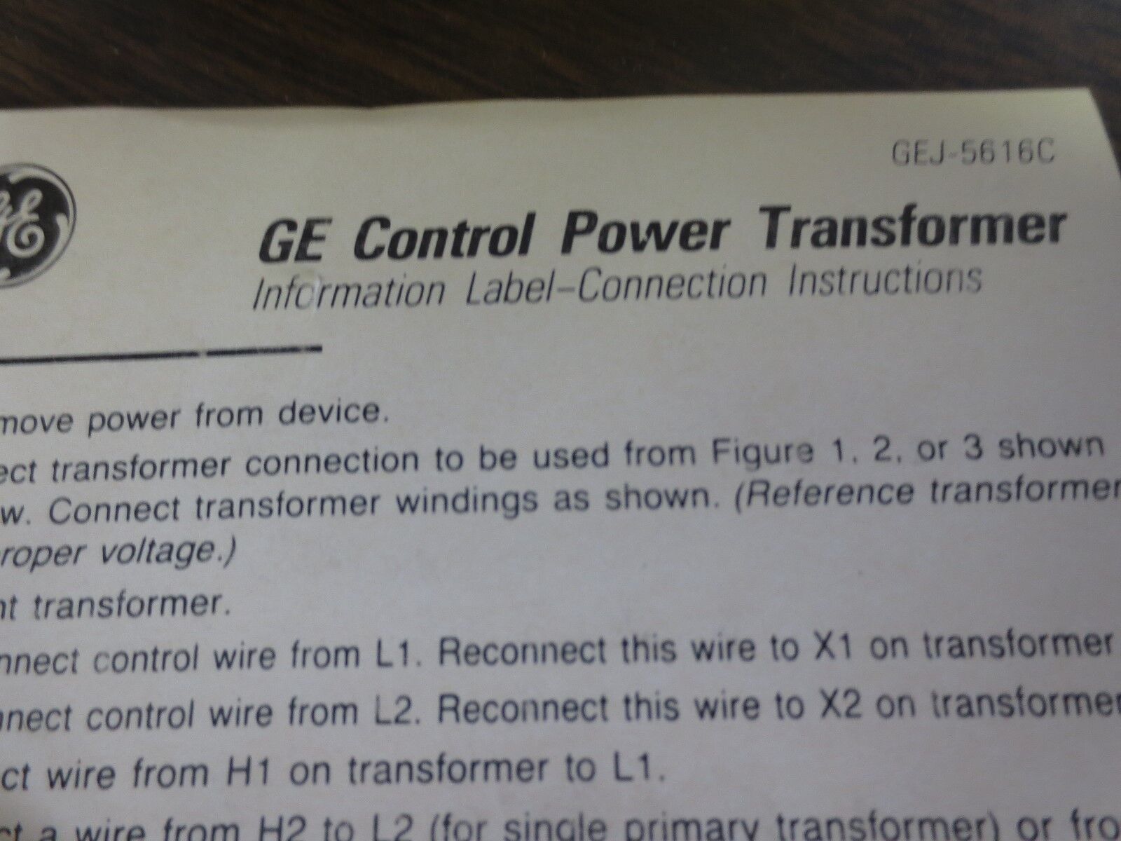 GENERAL ELECTRIC CONTROL TRANSFORMER