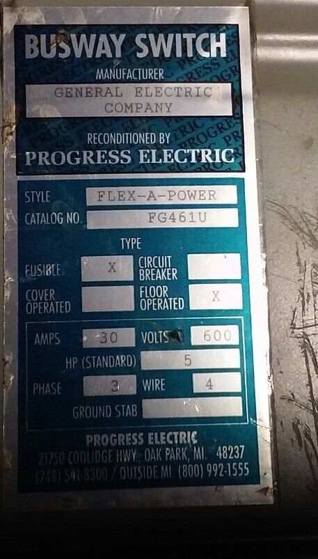 General Electric Flex-A-Power Busway SWITCH FG461U - 30 Amp, 600 Volt, 3-Pole