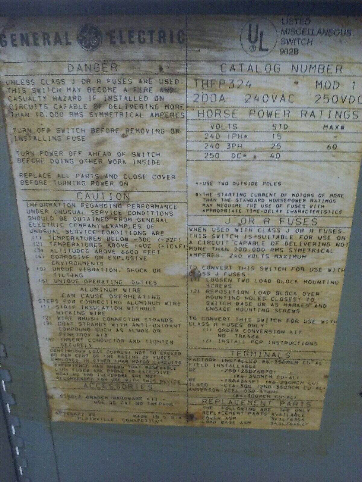GENERAL ELECTRIC THFP324 FUSIBLE PANELBOARD SWITCH
