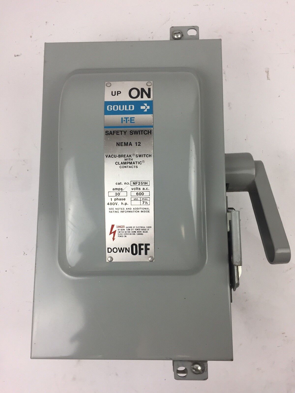 GOULD ITE NF251H VACU-BREAK SWITCH W/CLAMPMATIC CONTACTS 600 VAC 30 AMP 1 PHASE