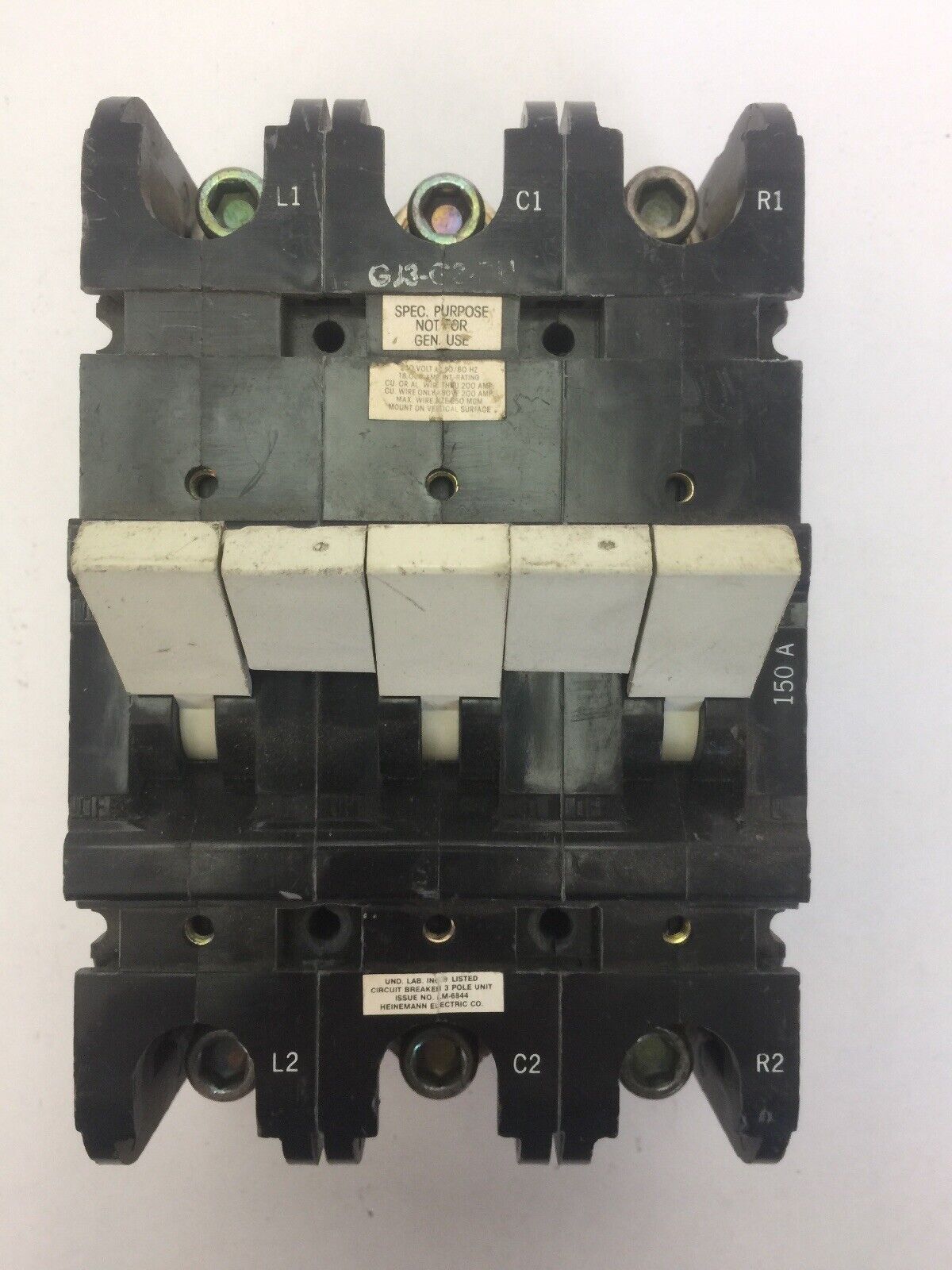 HEINEMANN GJ3-G3-DU CIRCUIT BREAKER 150AMP 240V 3POLE 50/60HZ GJ3-Z27-1 5445177