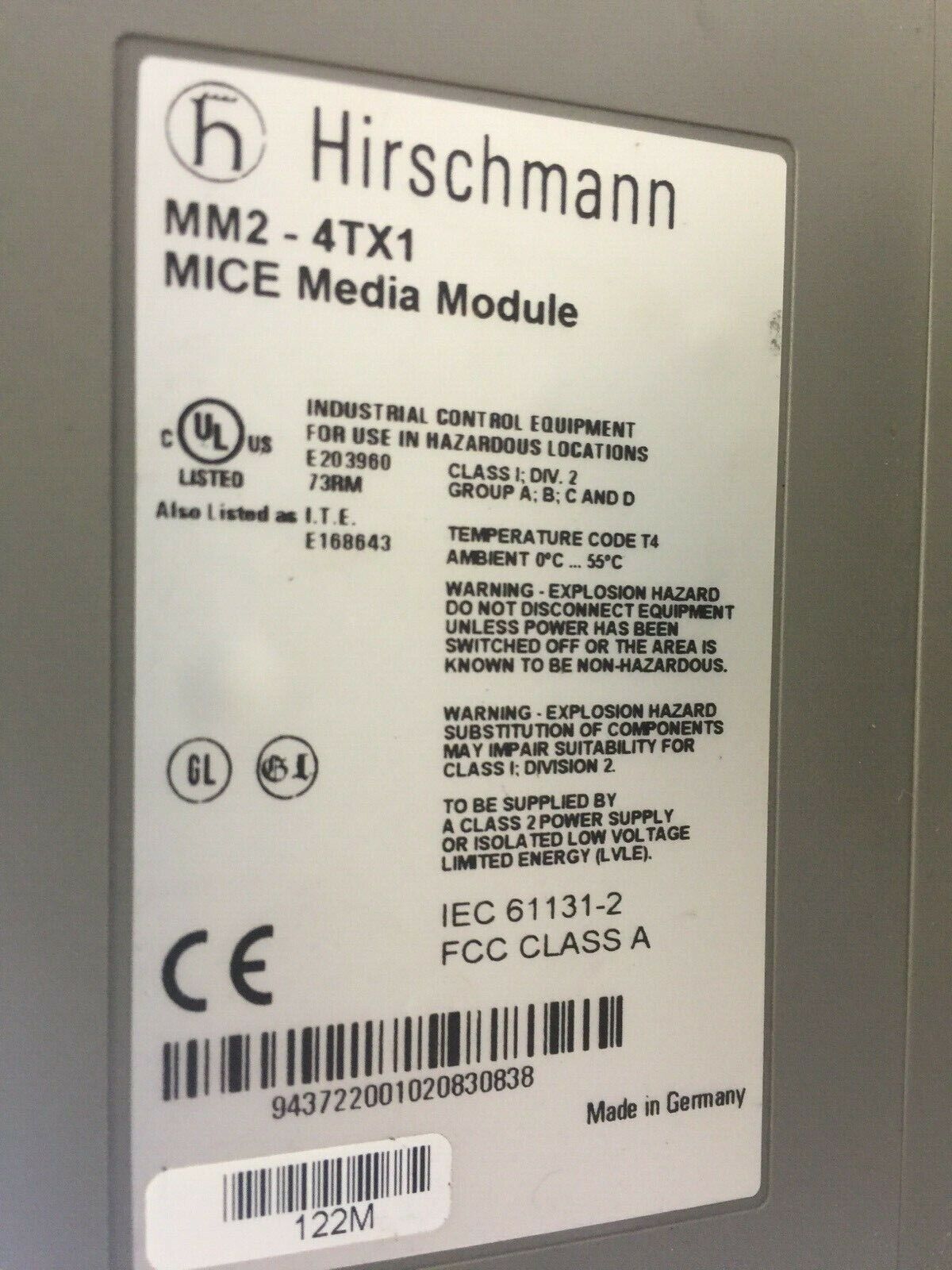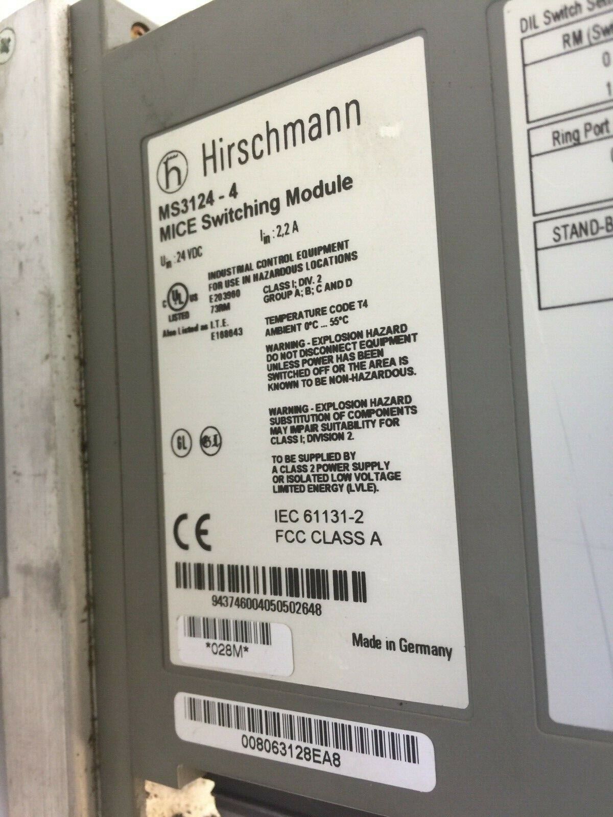 HIRSCHMANN MS3124-4 MICE SWITCHING MODULE 24VDC (4) MM2-4TX1 MICE MEDIA MODULE