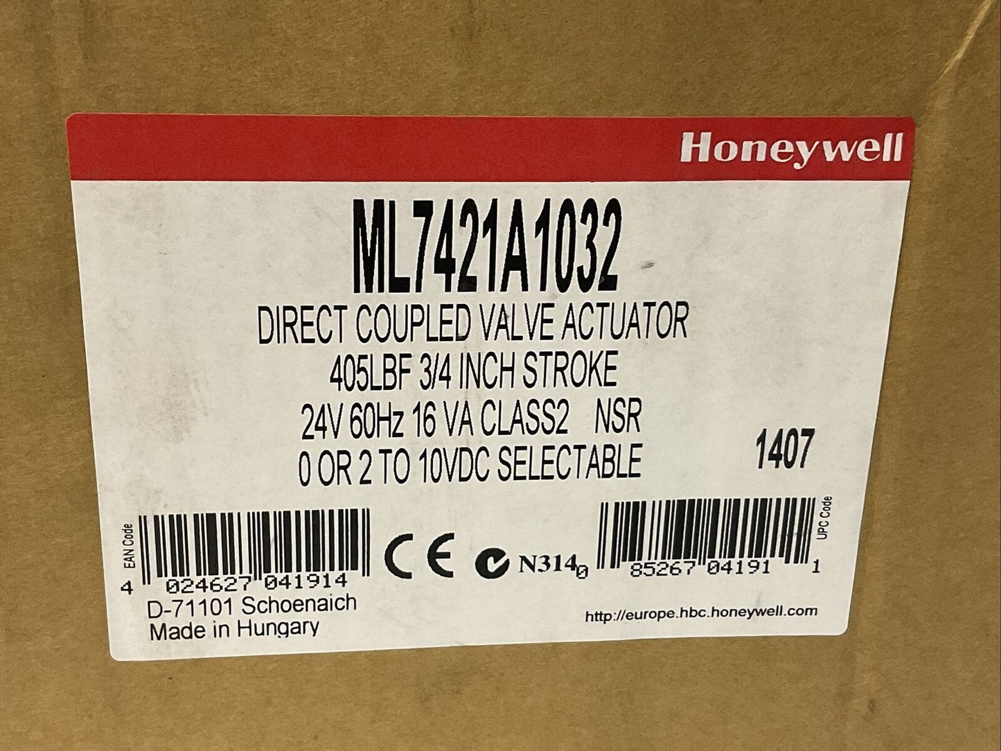 HONEYWELL ML7421A1032 DIRECT COUPLED VALVE ACTUATOR