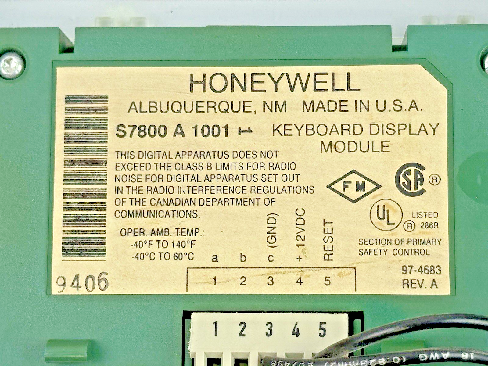HONEYWELL - S7800 A 1001 REV. A - KEYBOARD DISPLAY MODULE IN CASE-BURNER CONTROL