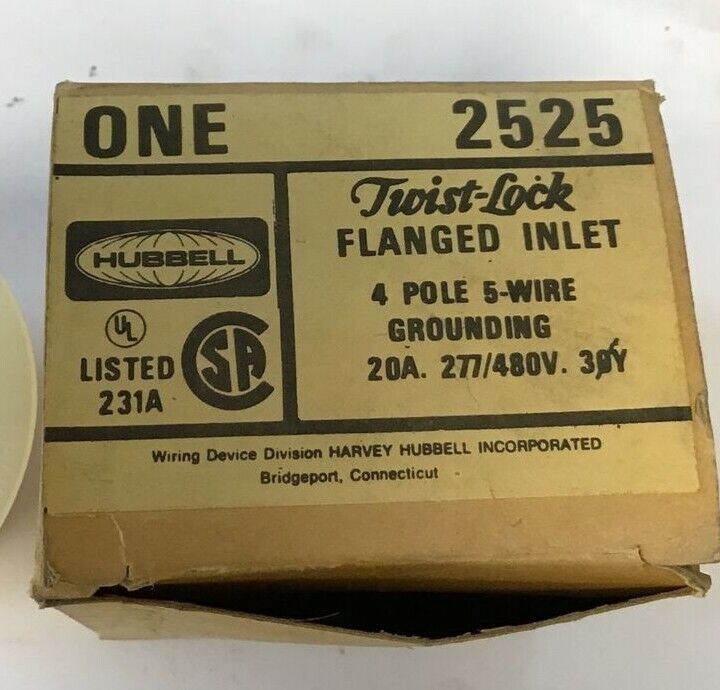 HUBBELL 2525 FLANGED INLET RECEPTACLE 4POLE 20A 177/480V. 30Y.