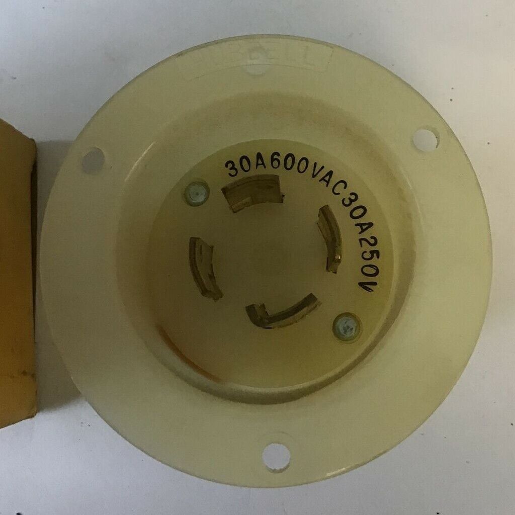 HUBBELL 3434-GC INSULGRIP FLANGED INLET 3POLE 30A 250V/ 30A 600VAC