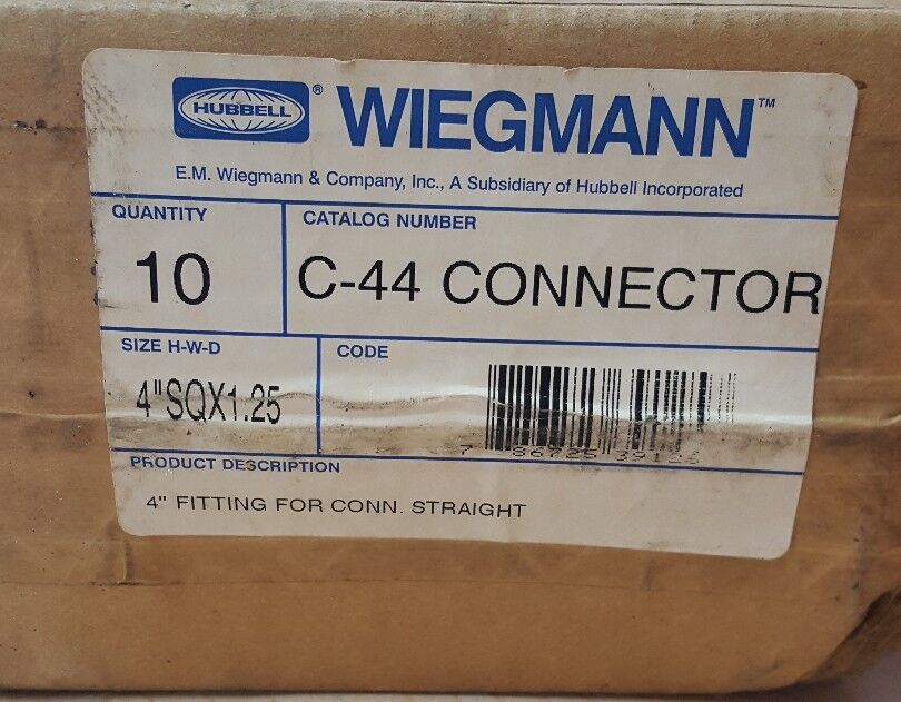 HUBBELL 4" SQUARE X 1.25 NEMA LAY IN DUCT FITTING C-44 CONNECTOR NEW FINISH GRAY