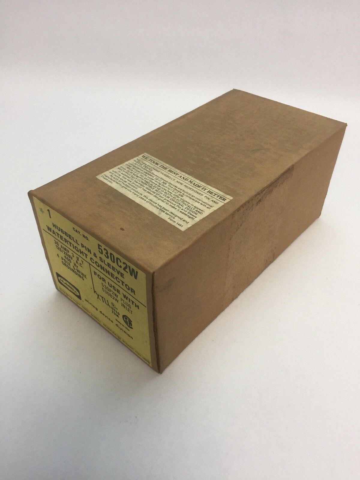 HUBBELL 530C2W PIN & SLEEVE WATERTIGHT CONNECTOR 30A 120/208VAC 4 POLE 5 WIRE GROUNDING FOR USE WITH 530P2W PLUG 530B2W INLET