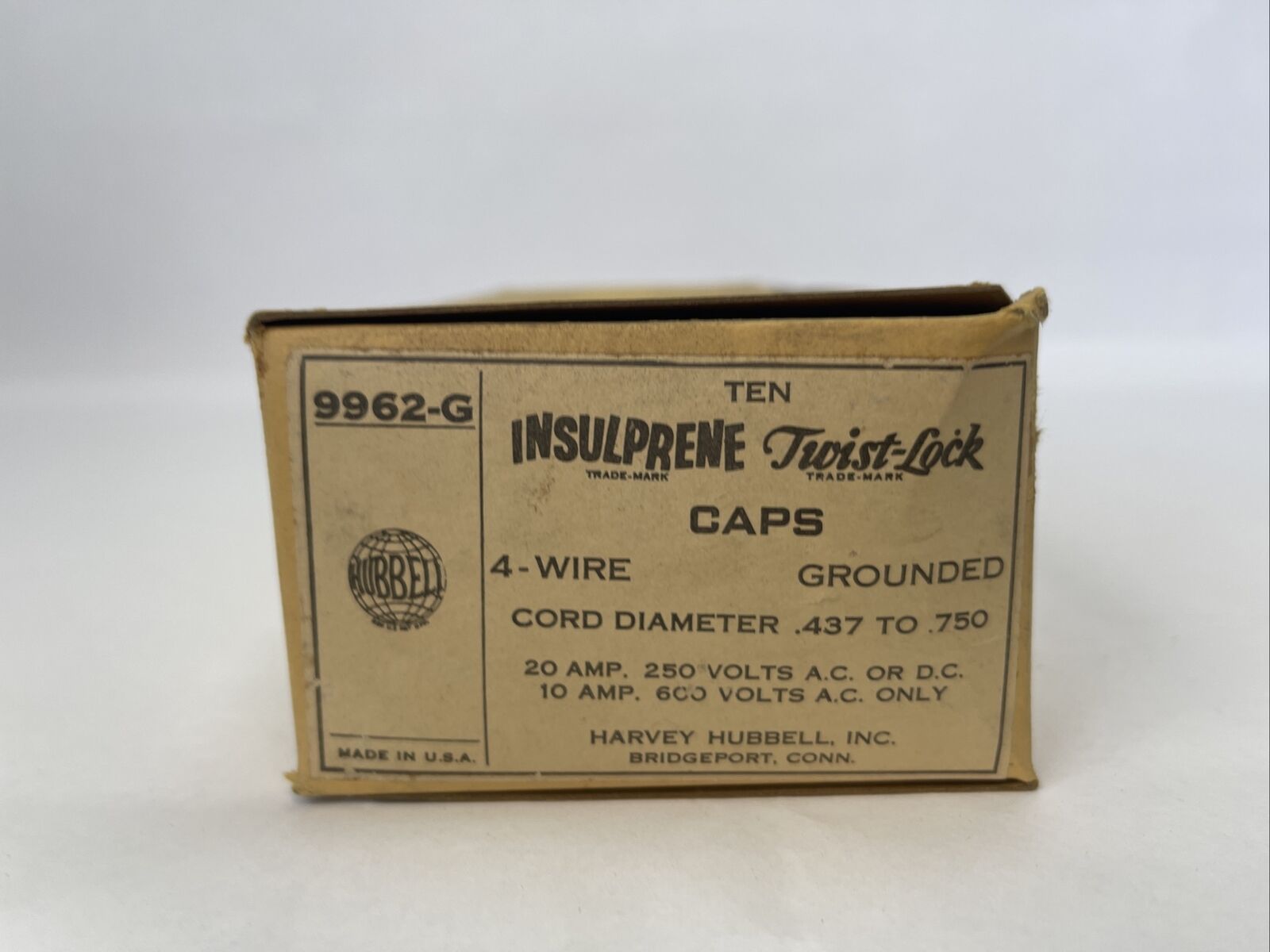 HUBBELL 9962-G CAPS 4WIRE GROUNDED 600VAC 10A 250V 20A CORD DIAMETER (BOX OF 10)