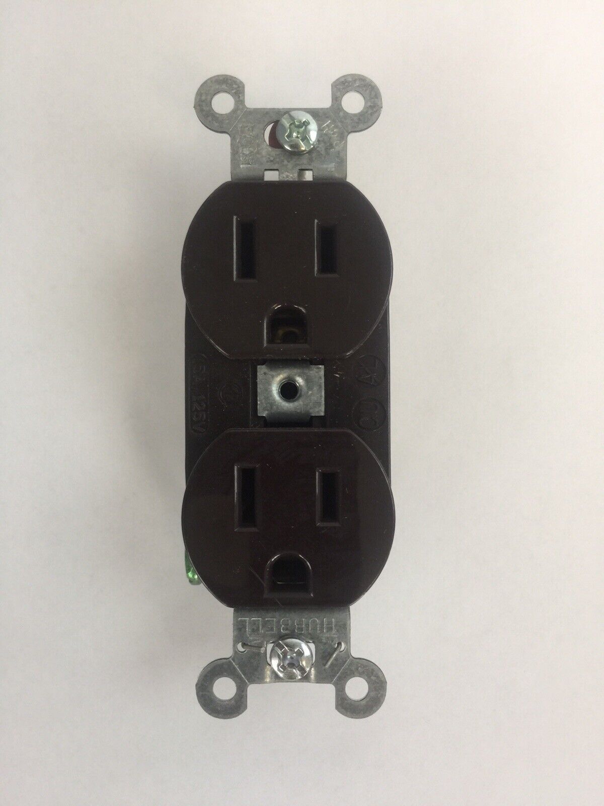 HUBBELL CR5252 15A 125V 2POLE 3 WIRE GROUNDING SMOOTH FACE BROWN DUPLEX RECEPTACLE BACK/SIDE WIRED (LOT OF 8)