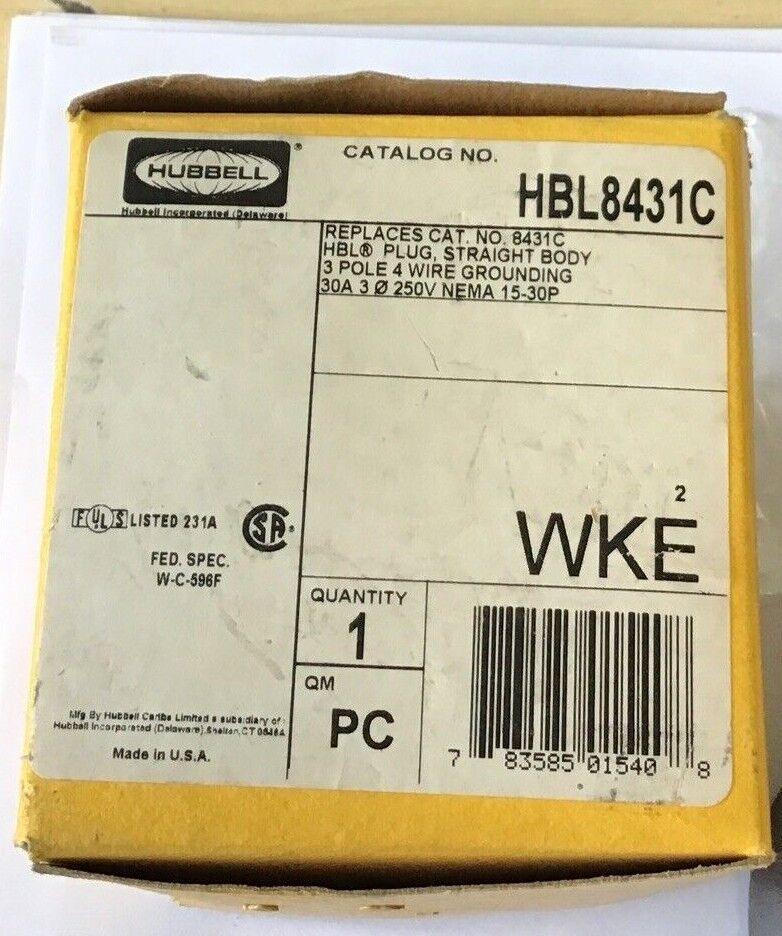 HUBBELL HBL8431C PLUG 3POLE 4WIRE 30A 250V STRAIGHT BODY