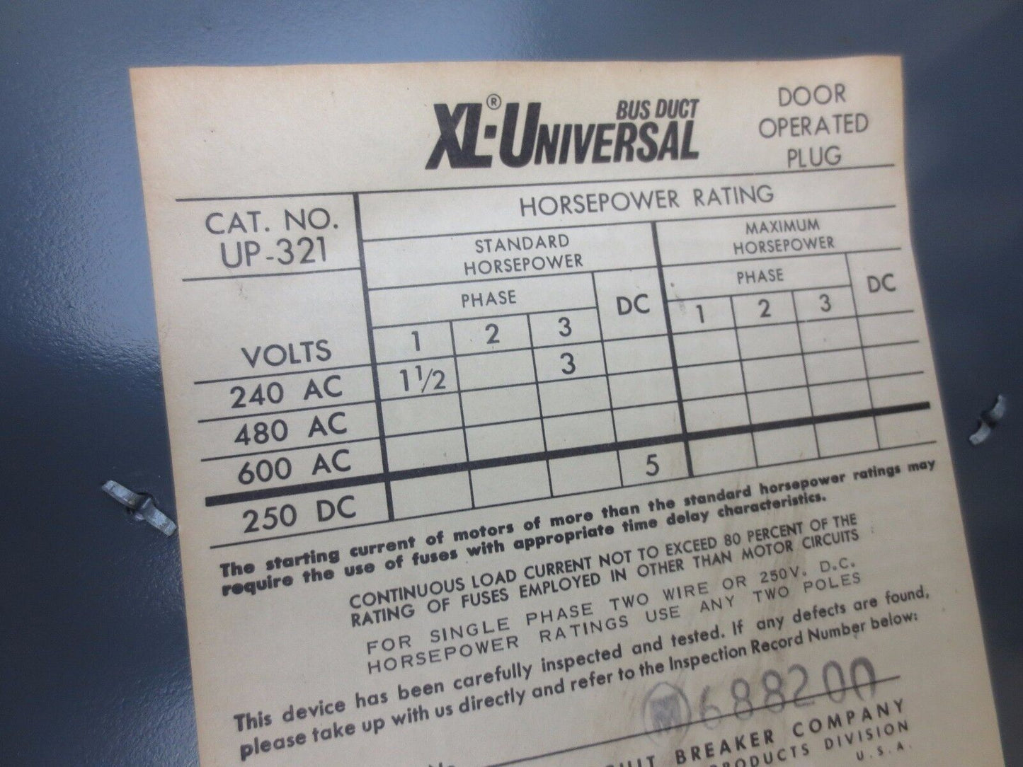 I-T-E UP321 - XL-UNIVERSAL DOOR-OPERATED BUS PLUG - 240V, 30A, 3-POLE
