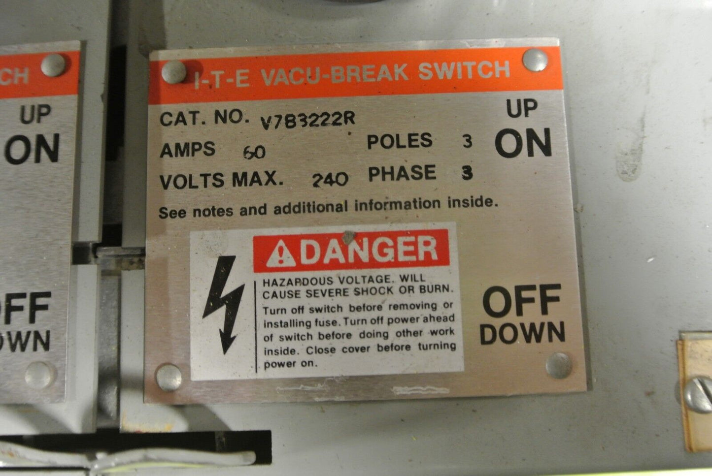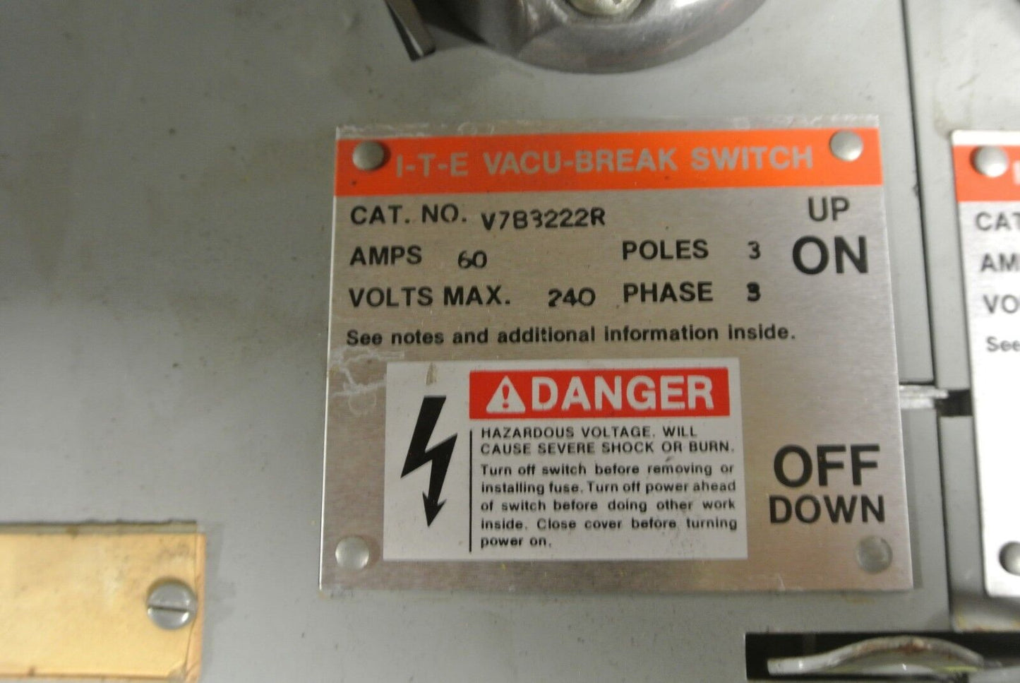 I-T-E V7B3222R - TWIN PANELBOARD VACU-BREAK SWITCH - 240V, 60A, 3-POLE
