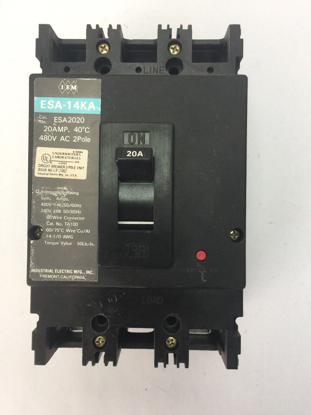 IEM ESA2020 CIRCUIT BREAKER 20AMP 480VAC 2 POLE INDUSTRIAL ELECTIC MFG