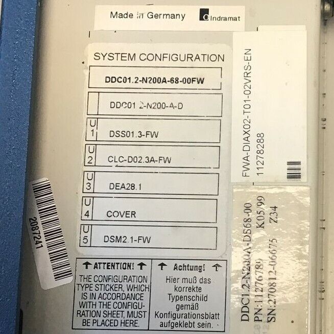 INDRAMAT DDC01.2-N200A-DS68-00-FW DIGITAL A.C.SERVO COMPACT CONTROLLER 11276789