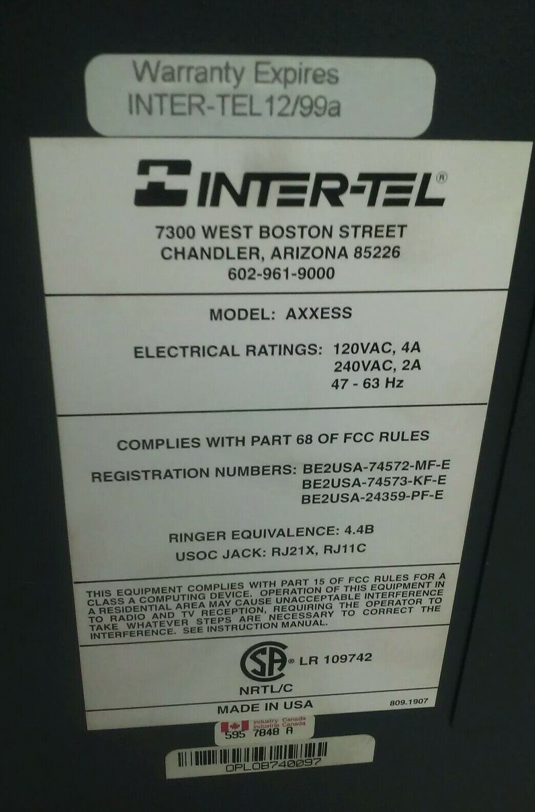 INTER-TEL MODEL AXXESS CARD CABINET W/ 550.0110 POWER SUPPLY 120/240V