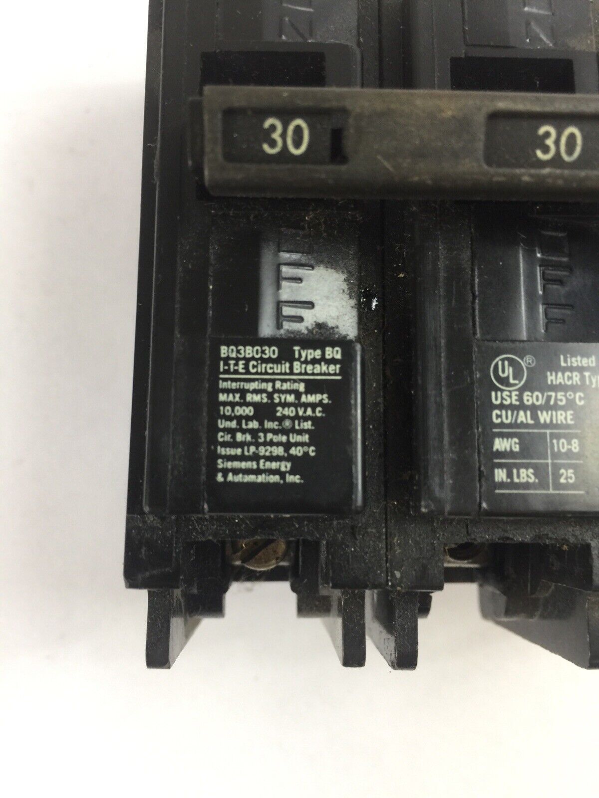 ITE BQ3B030 CIRCUIT BREAKER 3POLE 30AMP 240VAC