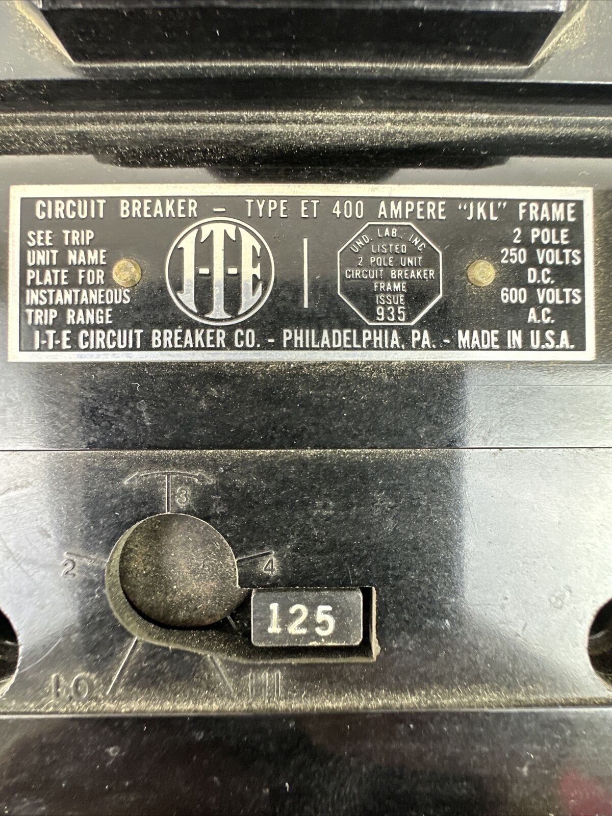 ITE ET5715 400A CIRCUIT BREAKER FRAME 250VDC 600VAC 2POLE W/ 125A TRIP UNIT