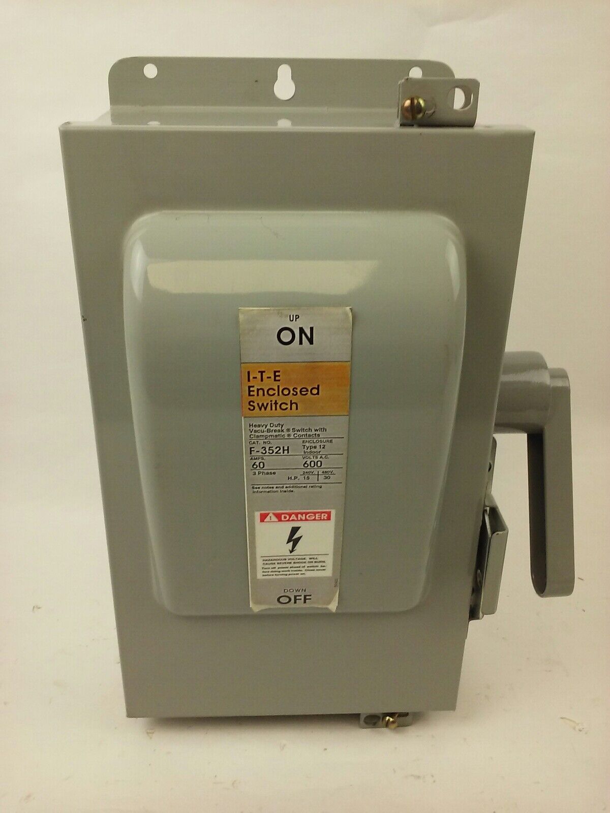 ITE GOULD F352H, ENCLOSED SWITCH, 60A, 600V, FUSIBLE, TYPE 12, 3PH, 30 MAX H.P.