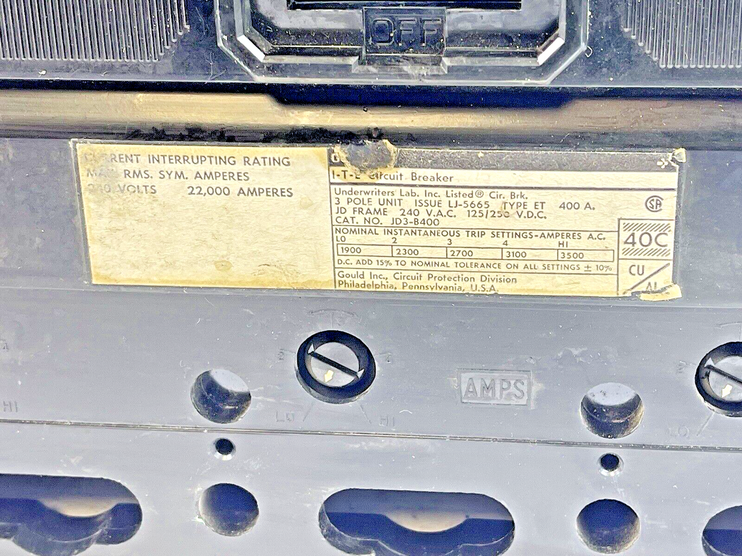 ITE / GOULD - JD3-B400 - CIRCUIT BREAKER -400 AMP, 240 VAC, 3 POLE