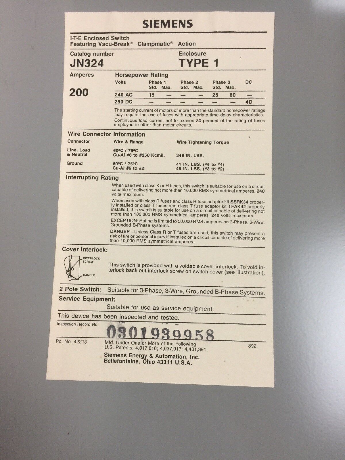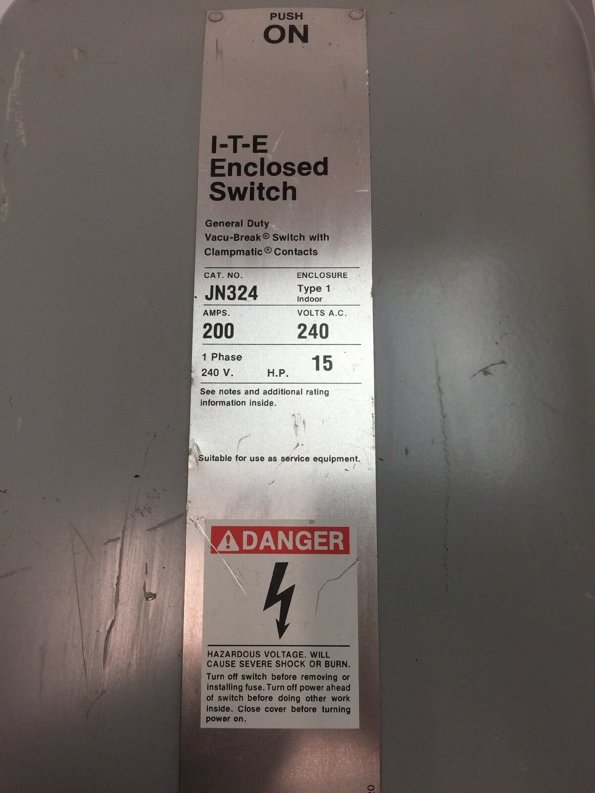 ITE JN324 200 AMP 240 VAC VACU-BREAK SWITCH WITH CLAMPMATIC CONTACTS