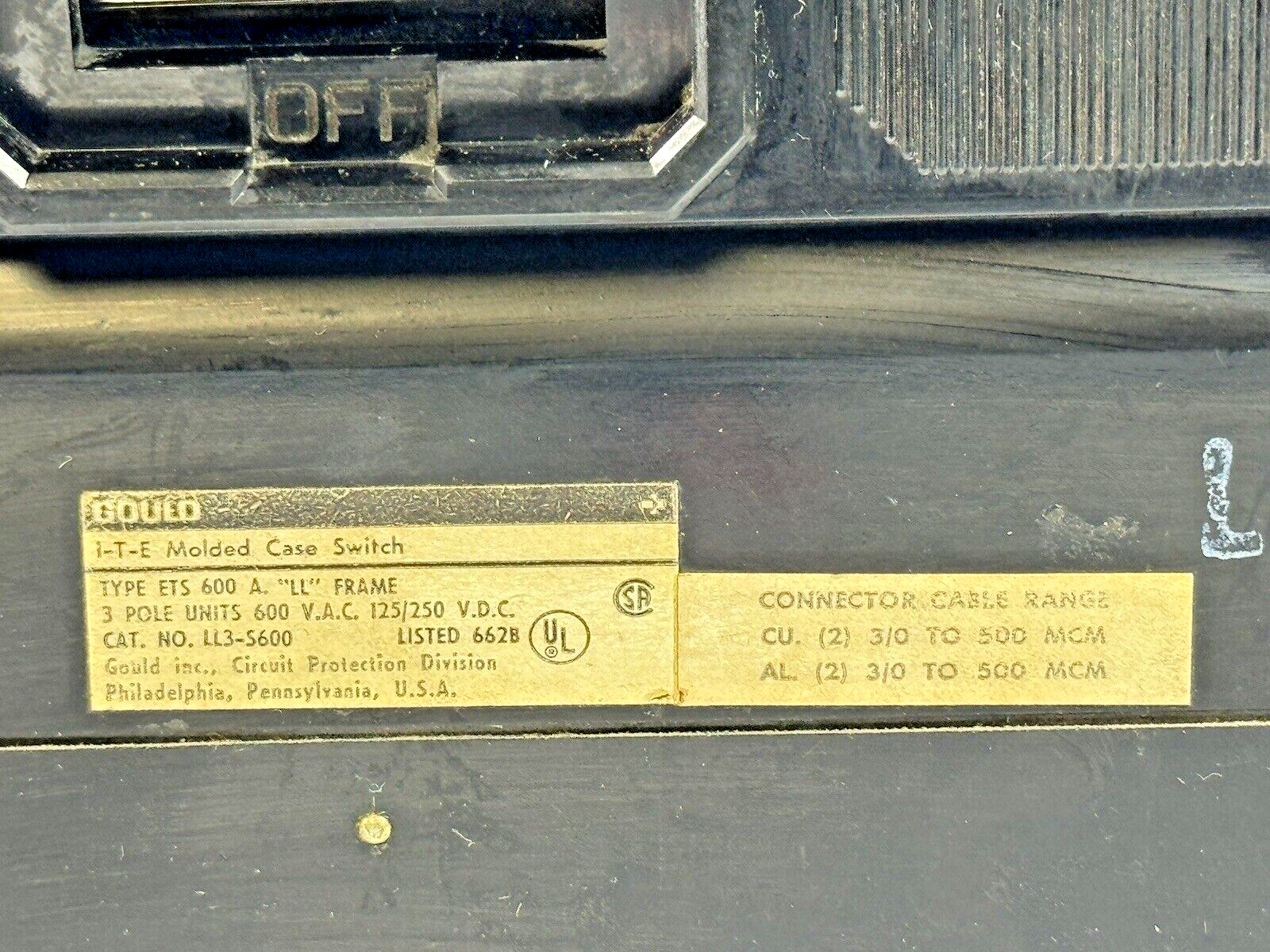 ITE - LL3-S600 - MOLDED CIRCUIT BREAKER -3 POLE/600 A/600 VAC, ET-600 LL FRAME