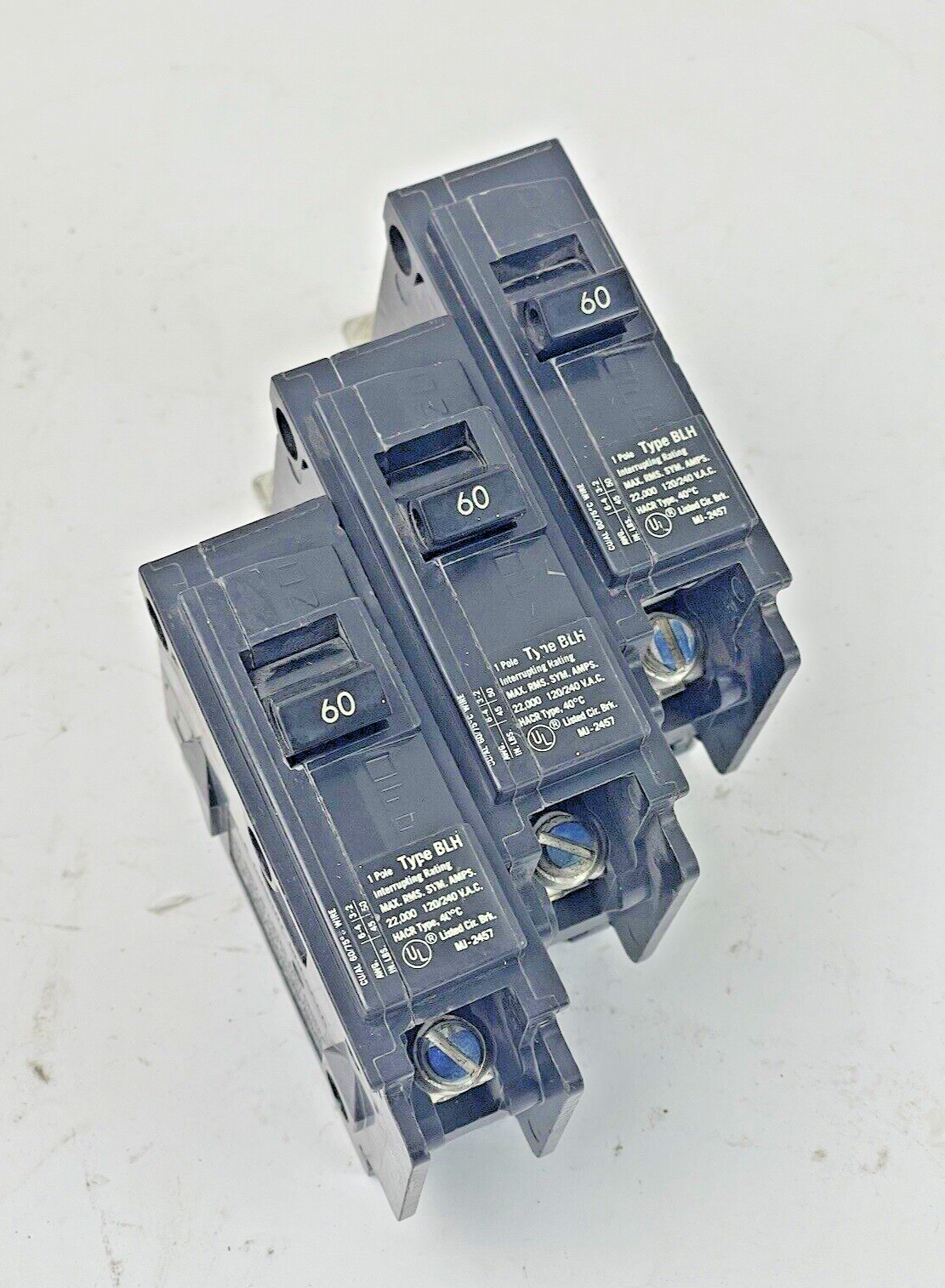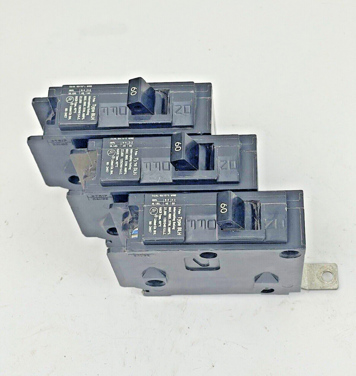 ITE *LOT OF 3* - B160H - CIRCUIT BREAKERS - 1 POLE, 60A, 240 VAC, 60Hz TYPE BLH
