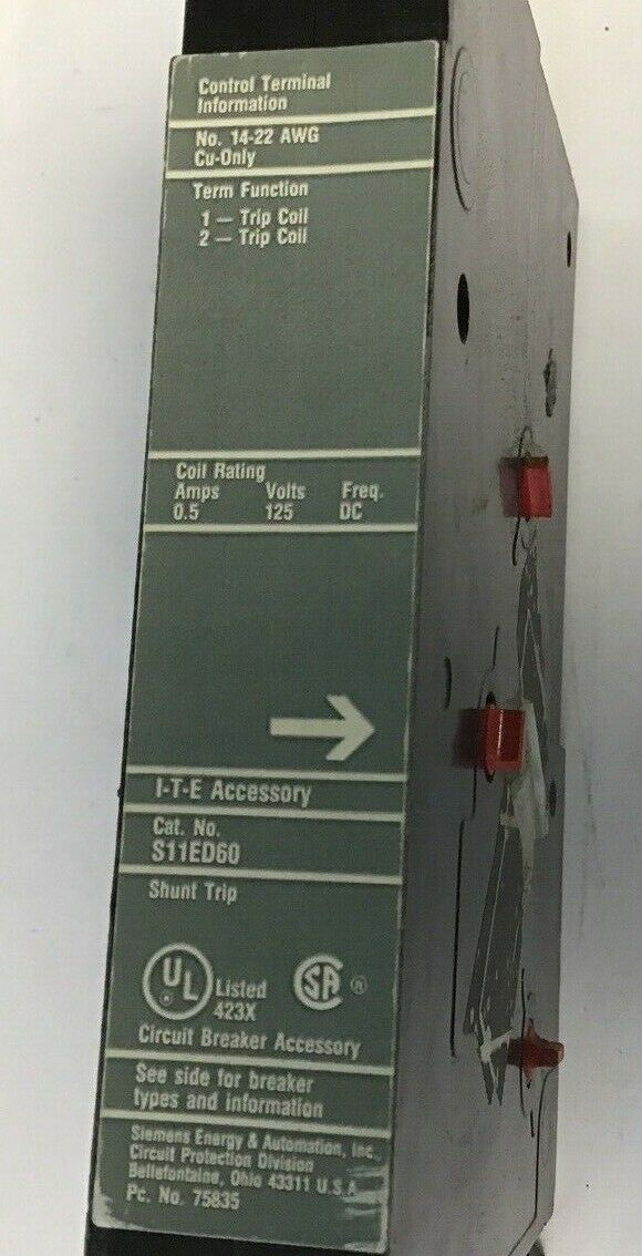 ITE SHUNT TRIP S11ED60 0.5A 125V FREQ.DC