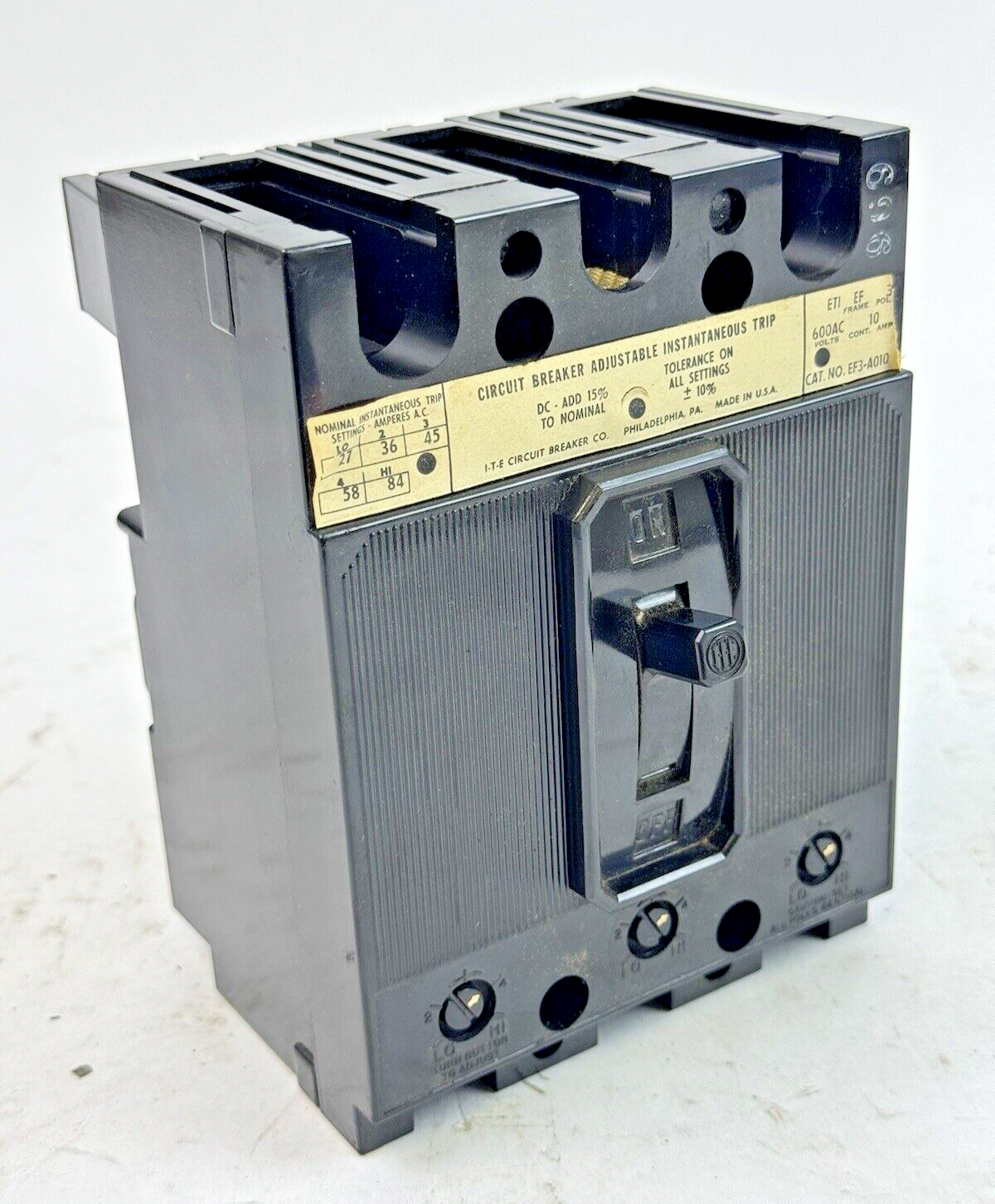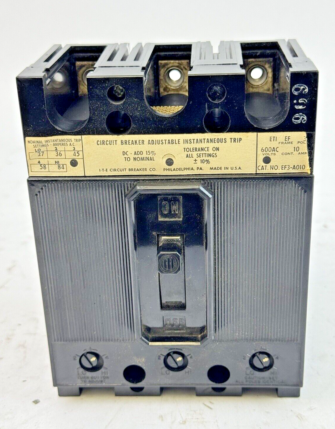 ITE / SIEMENS - EF3-A010 - MOLDED BREAKER W/ ADJ. TRIP - 3 POLE/10A/600 VAC