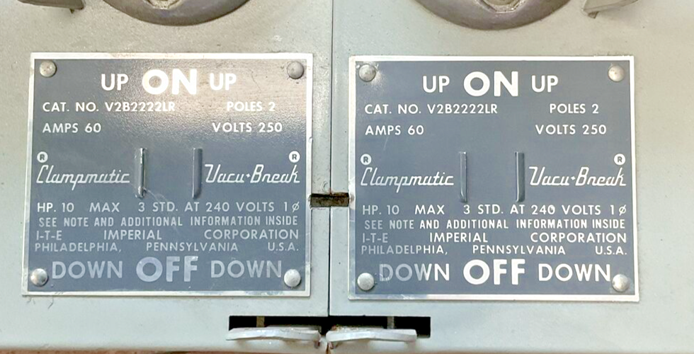 ITE V2B2222LR CLAMPOMATIC VACU-BREAK 60A 250V 2POLE 10HP