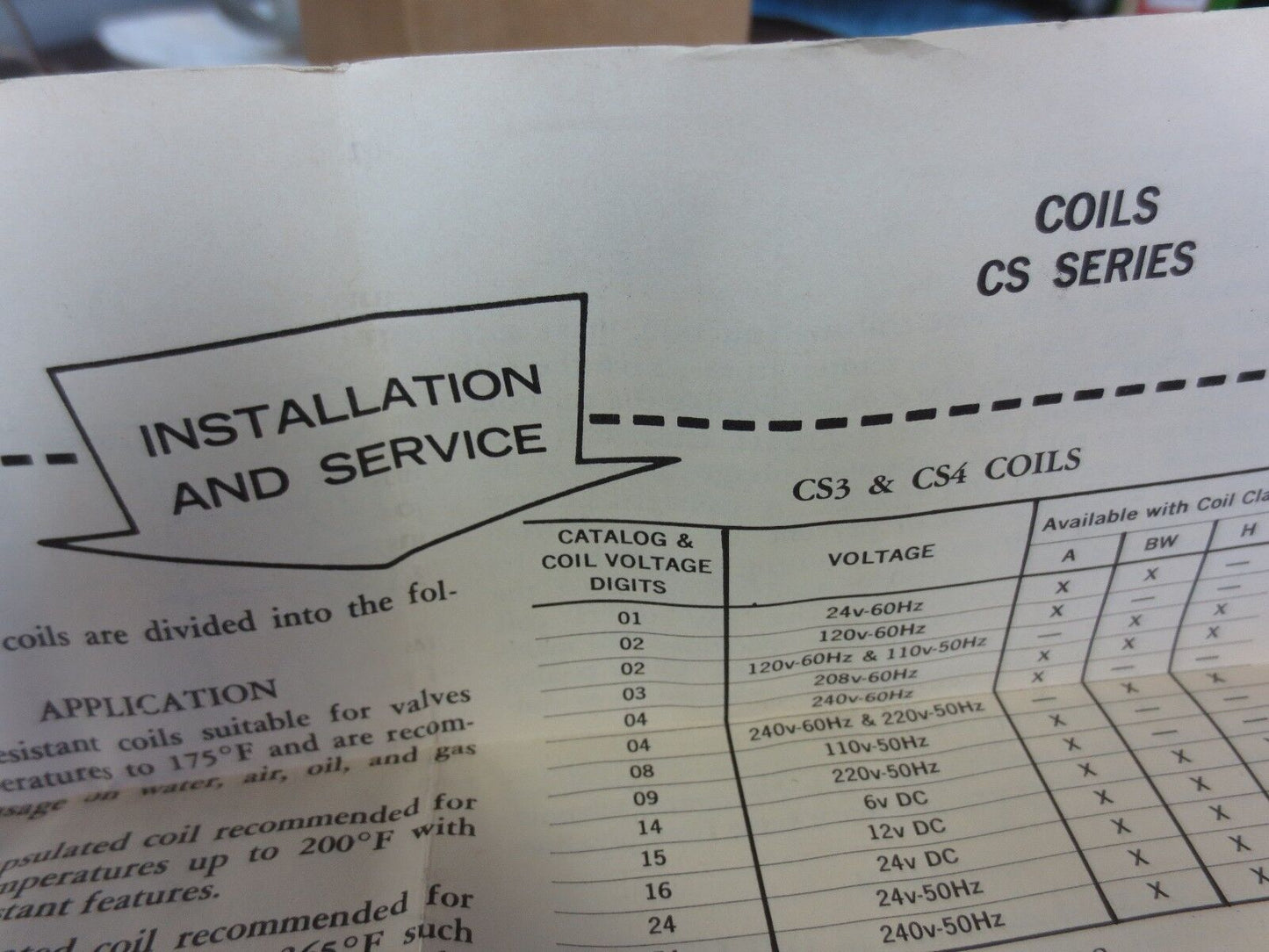 ITT GENERAL CONTROLS CS4AA02A24 SOLENOID COIL - SIZE CS4A - CLASS A, 120/60 NEW