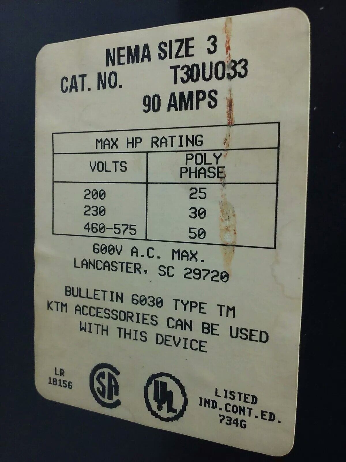 JOSLYN CLARK T30U033-96 TM REVERSING STARTER SIZE 3, 3PH, 90A, 600V, 50 HP, NEW