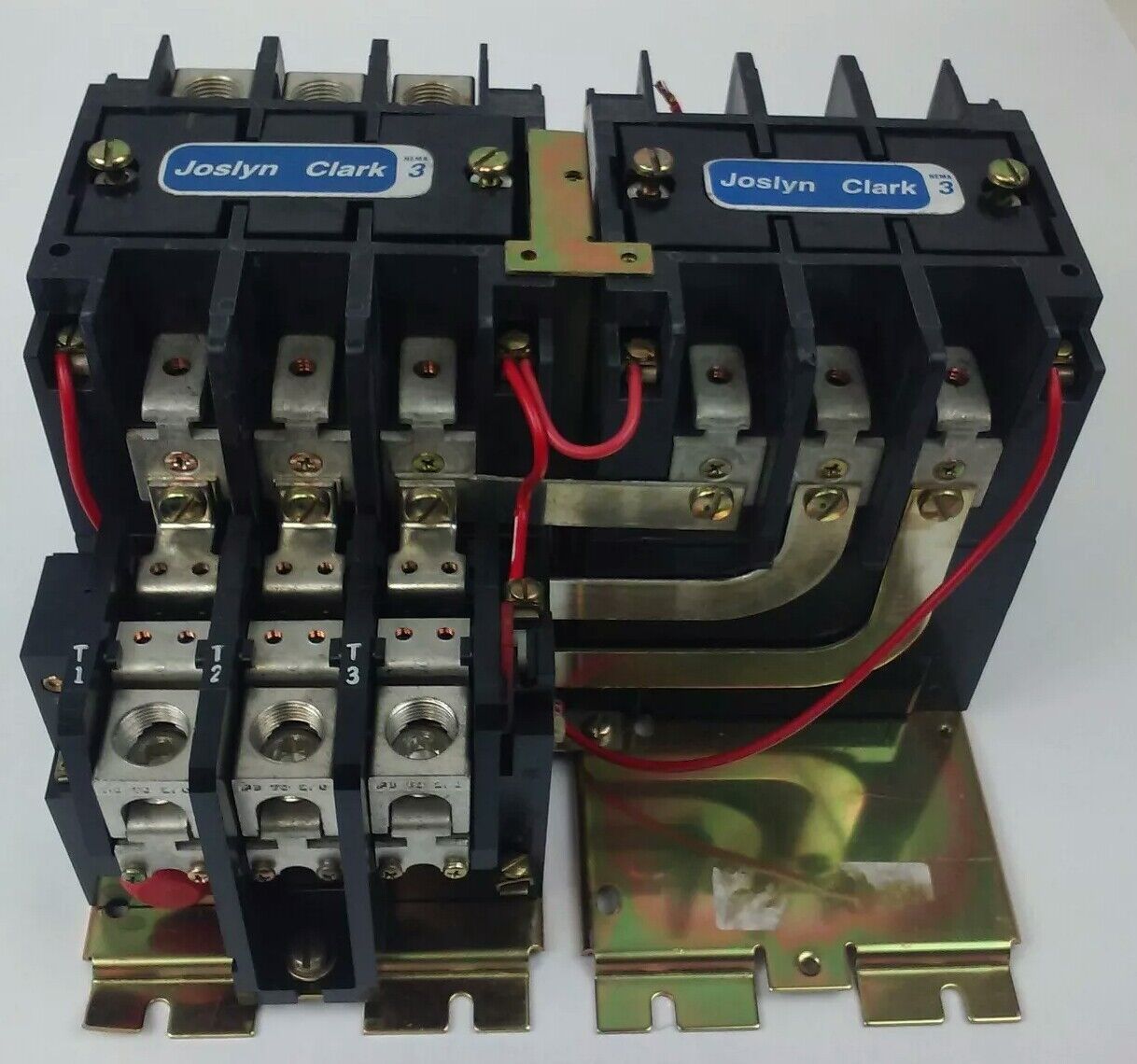JOSLYN CLARK T30U033-96 TM REVERSING STARTER SIZE 3, 3PH, 90A, 600V, 50 HP, BULLENTIN 6030 TYPE TM, 24V COIL @ 50/60HZ, OPEN TYPE, NEW