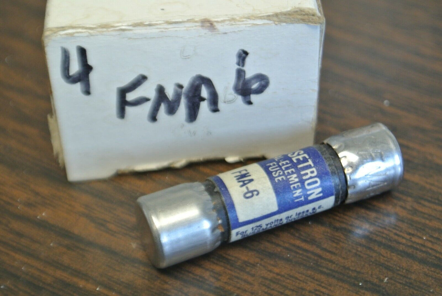 LOT of 4 / BUSS FNA6 FUSETRON FUSE / 6A / 125V / NEW SURPLUS / FNA-6