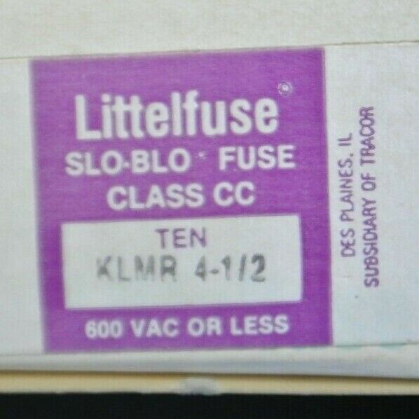LOT of 4 / LITTELFUSE KLMR-4-1/2 CLASS CC FUSE / 4-1/2A / 600V / NEW SURPLUS