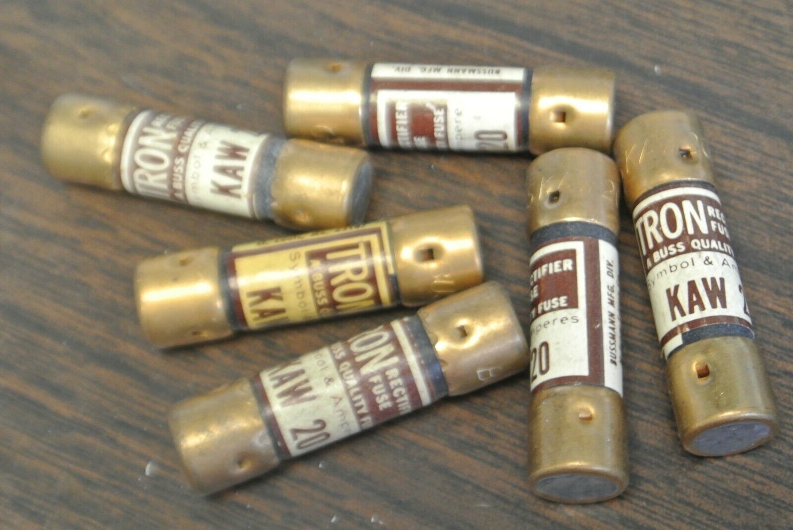 LOT of 6 / BUSSMANN / TRON KAW20 RECTIFIER FUSE / 130VAC / 20A / NEW SURPLUS