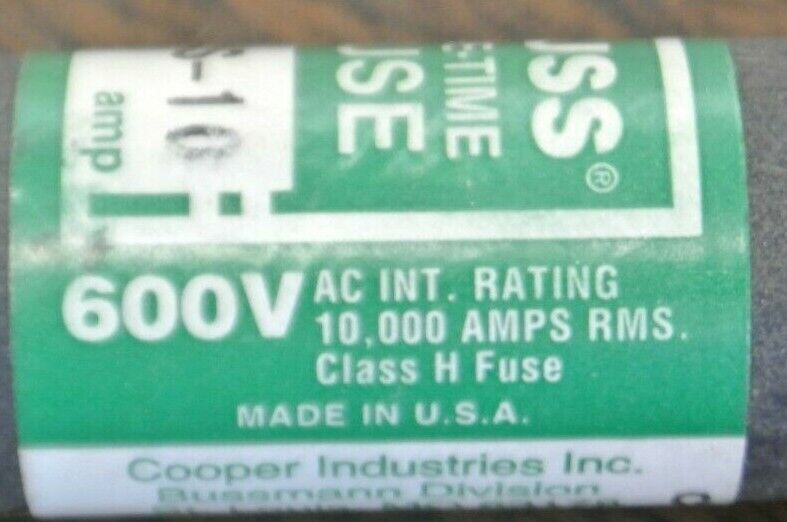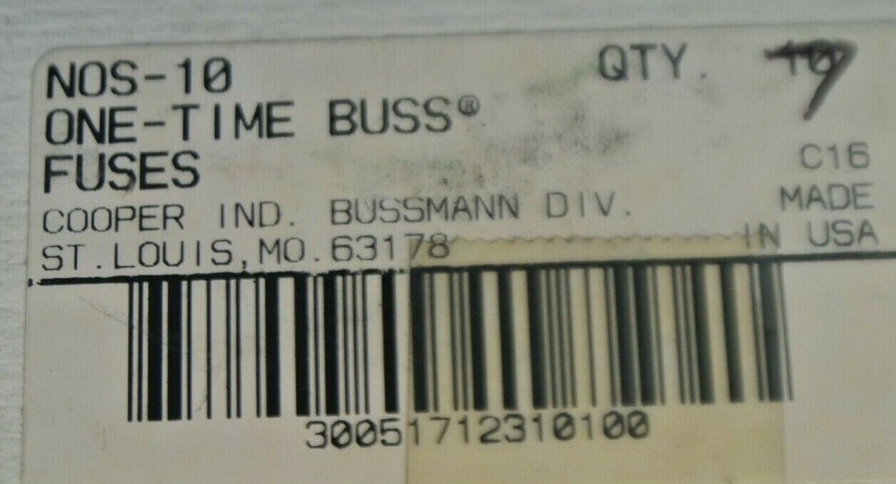 LOT of 7 / COOPER-BUSSMANN / NOS10 / ONE-TIME FUSE / 10A / 600V / NEW SURPLUS