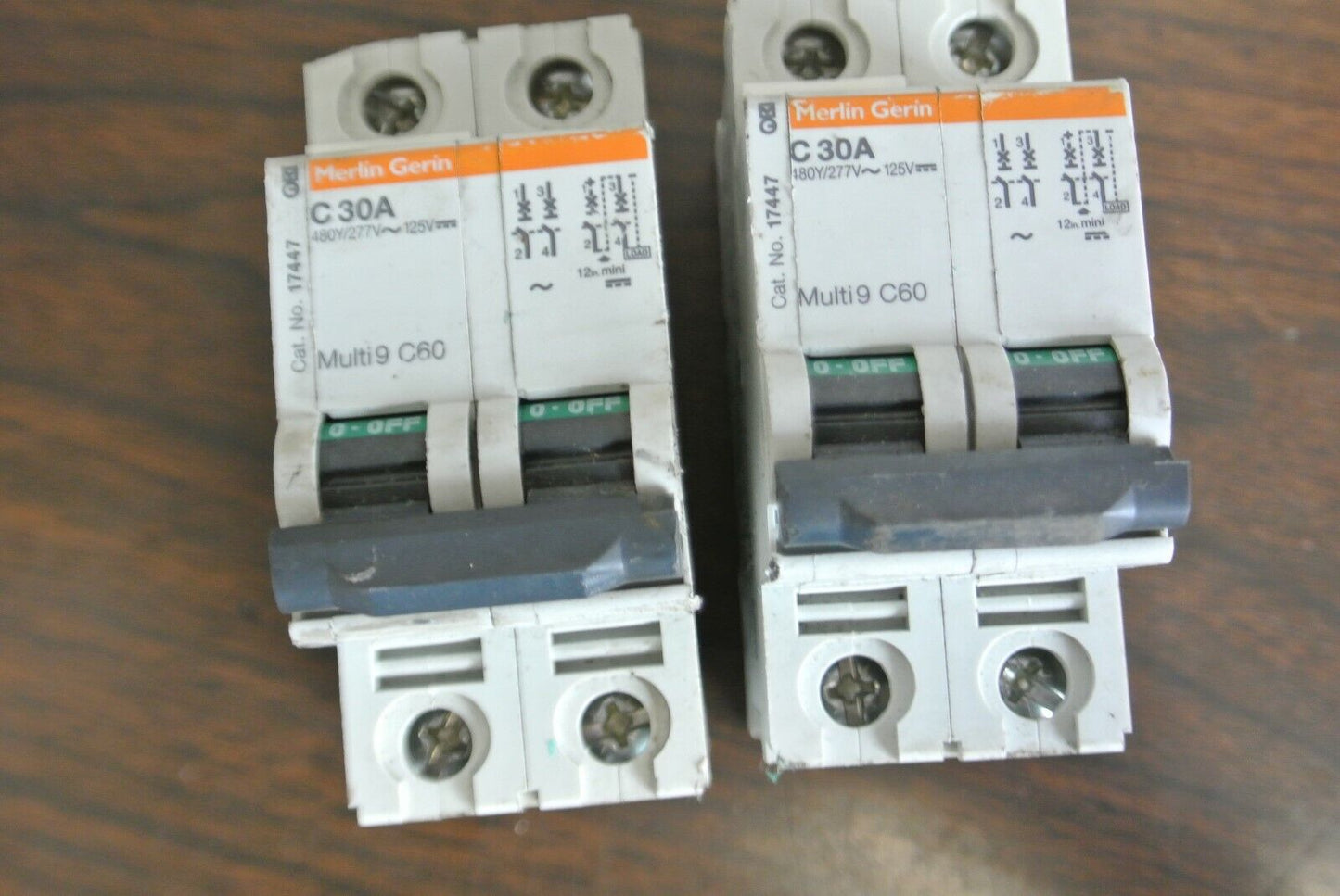 LOT of 7 / MERLIN GERIN CIRCUIT BREAKERS / C30A / C60N D10A / C60N C2, C4, C16