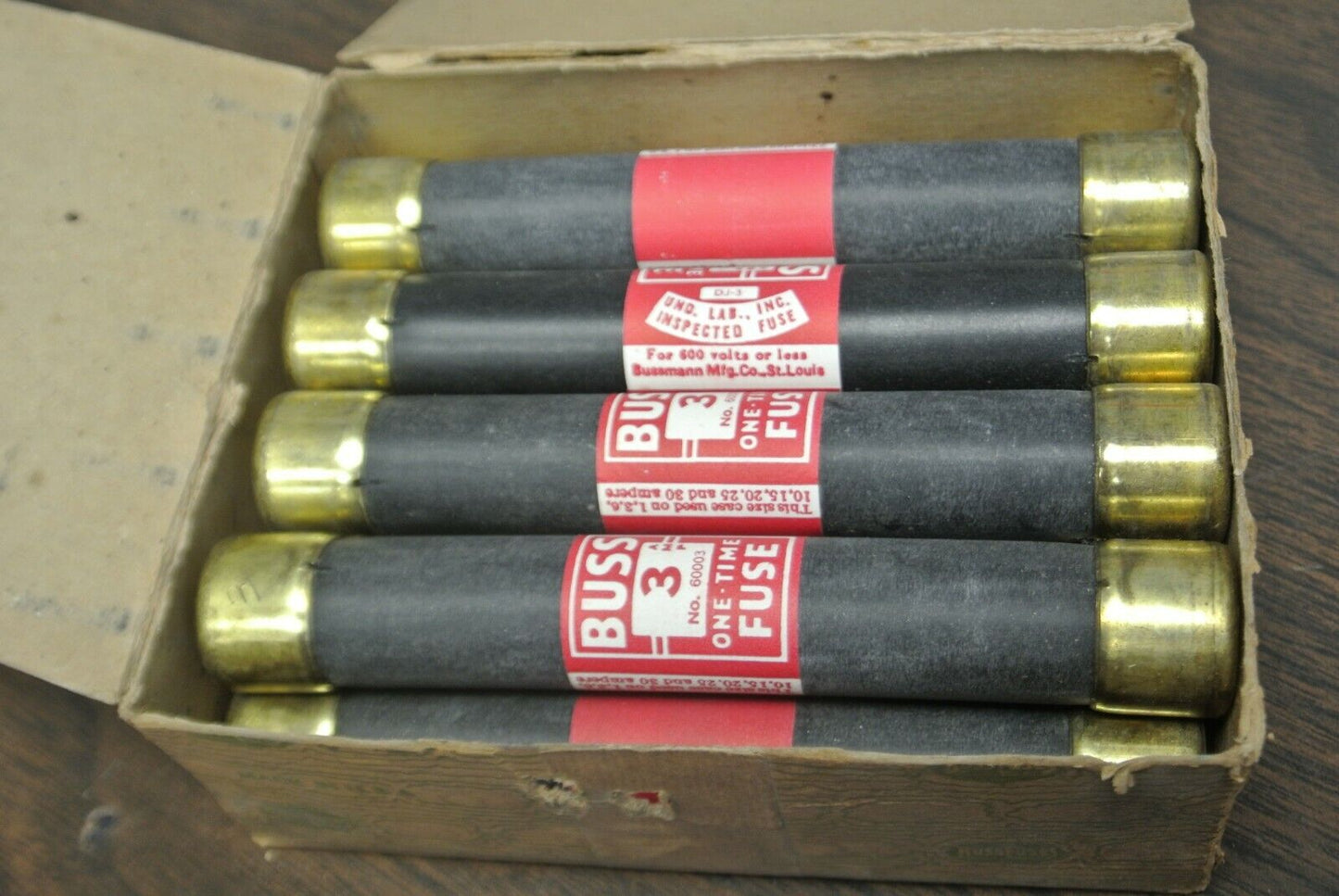 LOT of 9 / BUSS 60003 ONE-TIME FUSE / 3A / 600V / NEW SURPLUS / NOS3 (?)